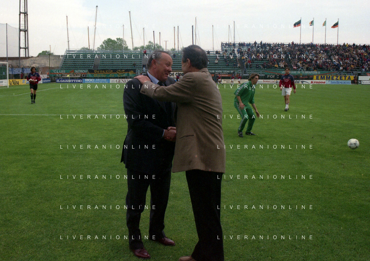 19-04-1998 VENEZIA-CAMPIONATO DI CALCIO SERIE B VENEZIA REGGIANA 2-1 NELLA FOTO FRANCO VARRELLA ALLENATORE REGGIANA CON WALTER NOVELLINO ALLENATORE VENEZIA AG ALDO LIVERANI SAS