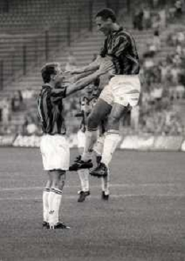 30-08-1992 MILANO FINALE DI SUPERCOPPA ITALIANA MILAN PARMA 2-1 NELLA FOTO JEAN PIERRE PAPIN E MARCO VAN BASTEN AG ALDO LIVERANI SAS
