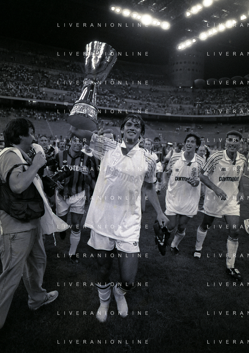 30-08-1992 MILANO FINALE DI SUPERCOPPA ITALIANA MILAN PARMA 2-1 NELLA FOTO PAOLO MALDINI AG ALDO LIVERANI SAS