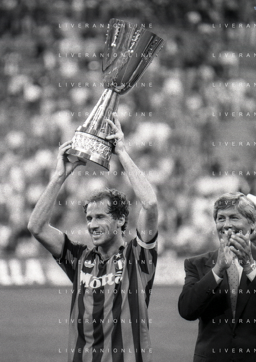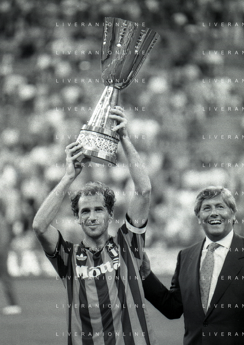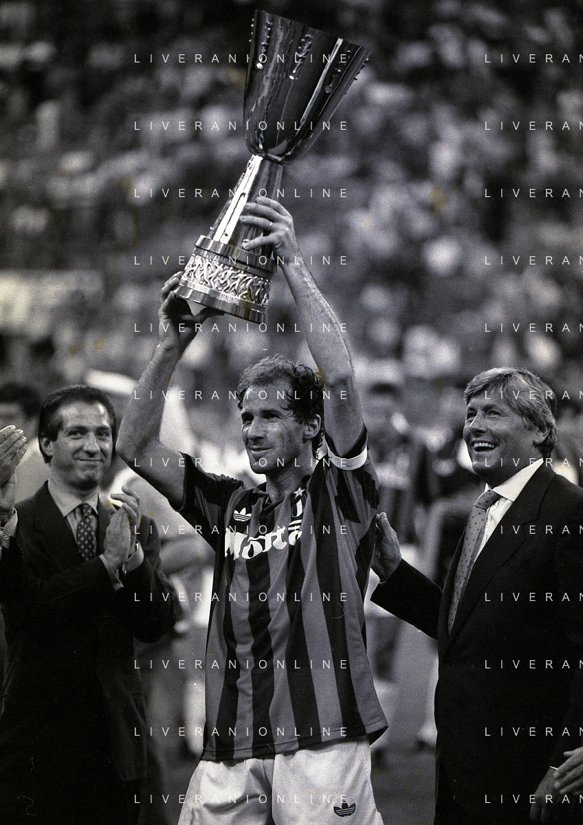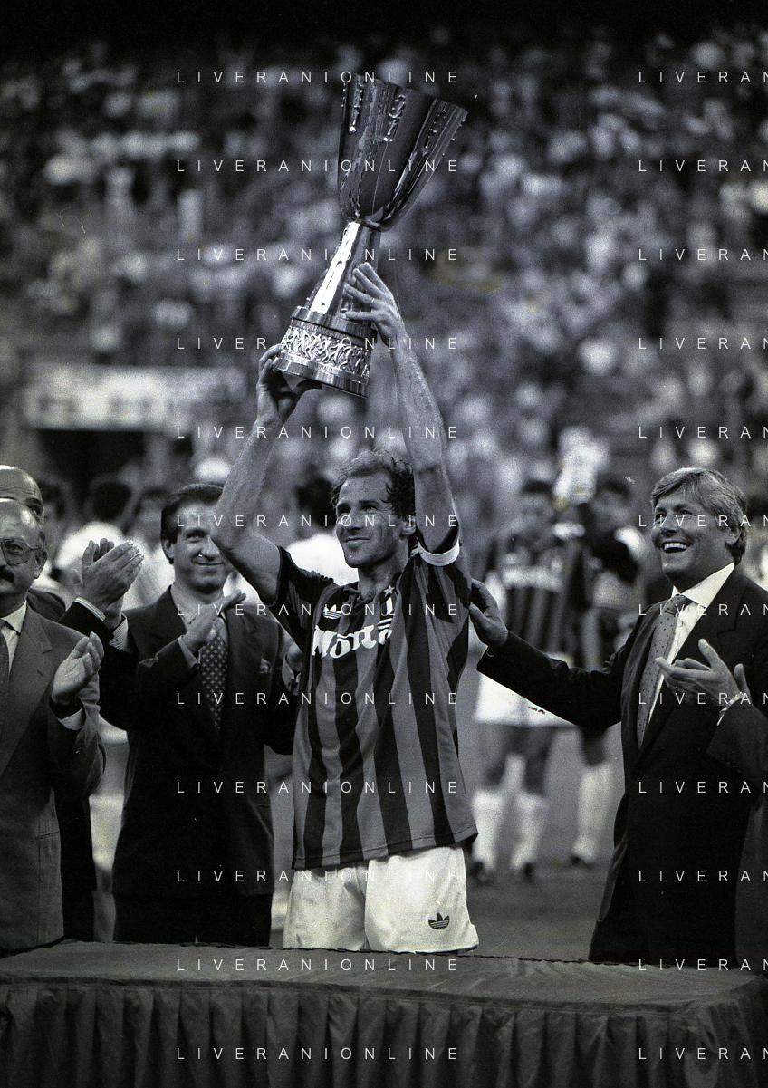 30-08-1992 MILANO FINALE DI SUPERCOPPA ITALIANA MILAN PARMA 2-1 NELLA FOTO FRANCO BARESI AG ALDO LIVERANI SAS