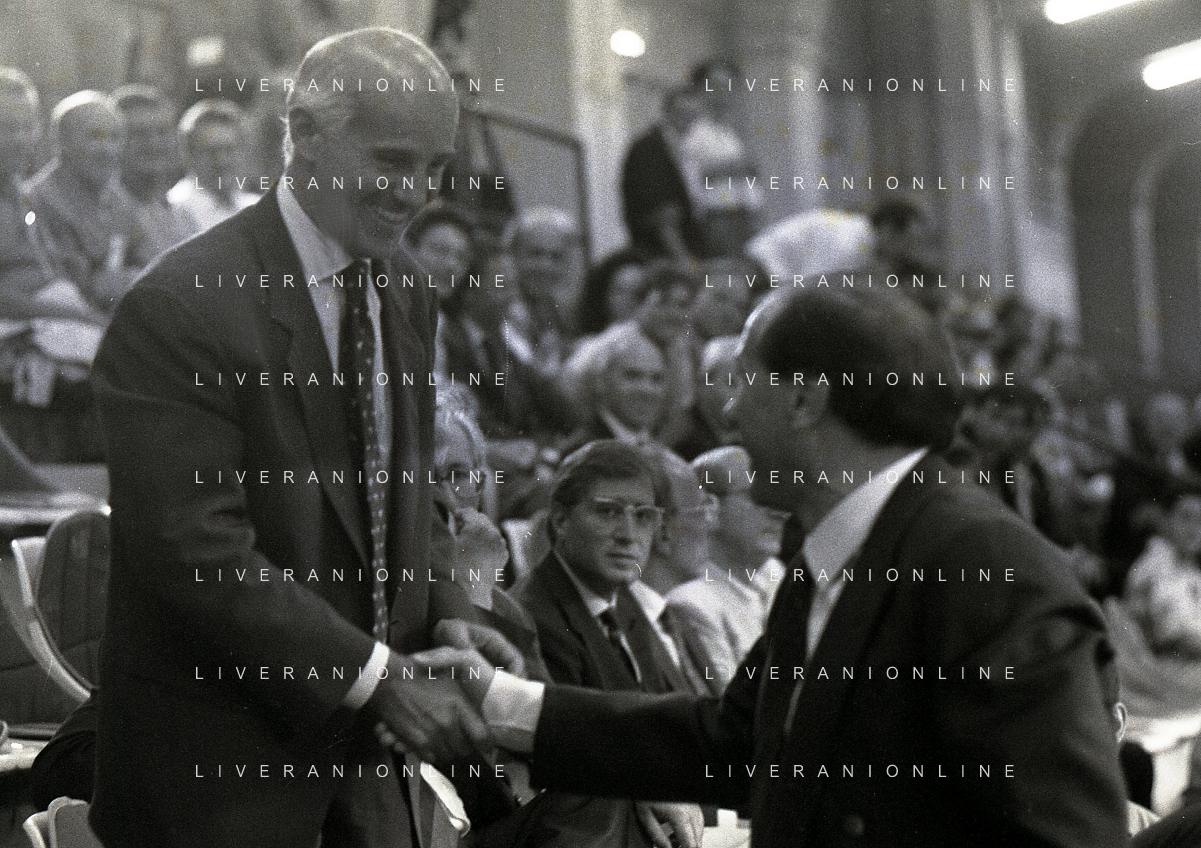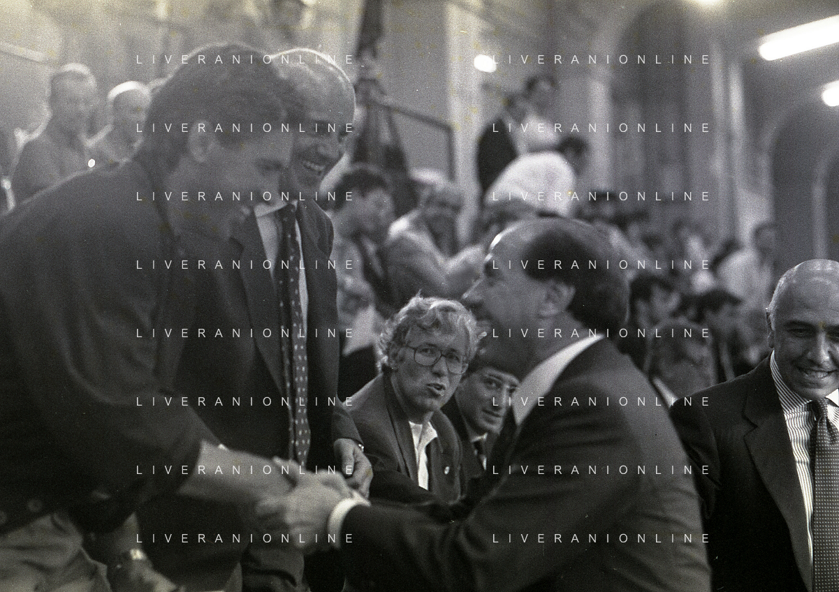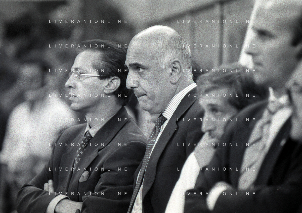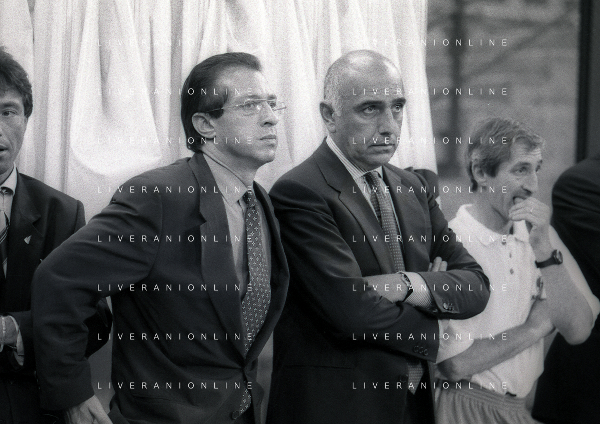 30-08-1992 MILANO FINALE DI SUPERCOPPA ITALIANA MILAN PARMA 2-1 NELLA FOTO PAOLO BERLUSCONI E ADRIANO GALLIANI AG ALDO LIVERANI SAS