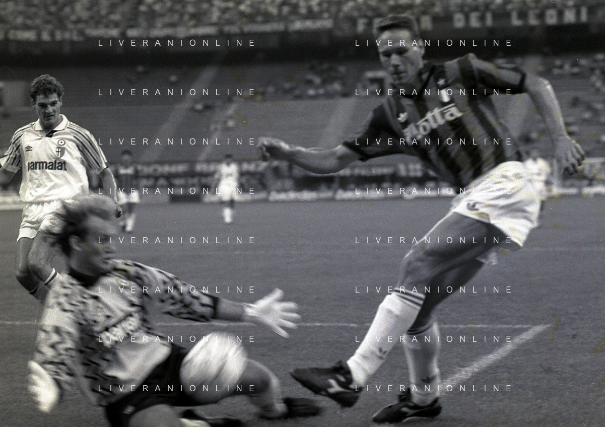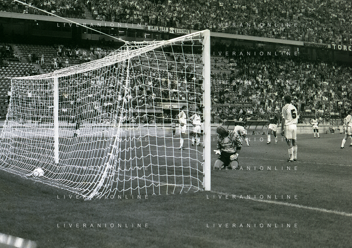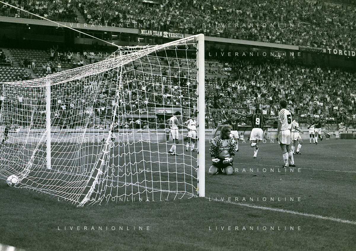 30-08-1992 MILANO FINALE DI SUPERCOPPA ITALIANA MILAN PARMA 2-1 NELLA FOTO RIGORE PARMA AG ALDO LIVERANI SAS