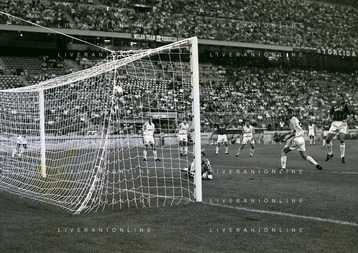 30-08-1992 MILANO FINALE DI SUPERCOPPA ITALIANA MILAN PARMA 2-1 NELLA FOTO GOAL MILAN AG ALDO LIVERANI SAS