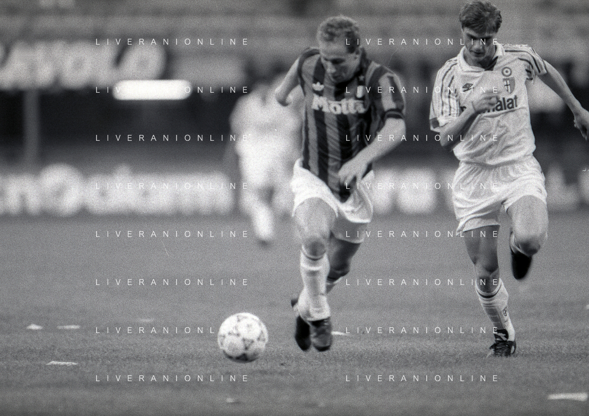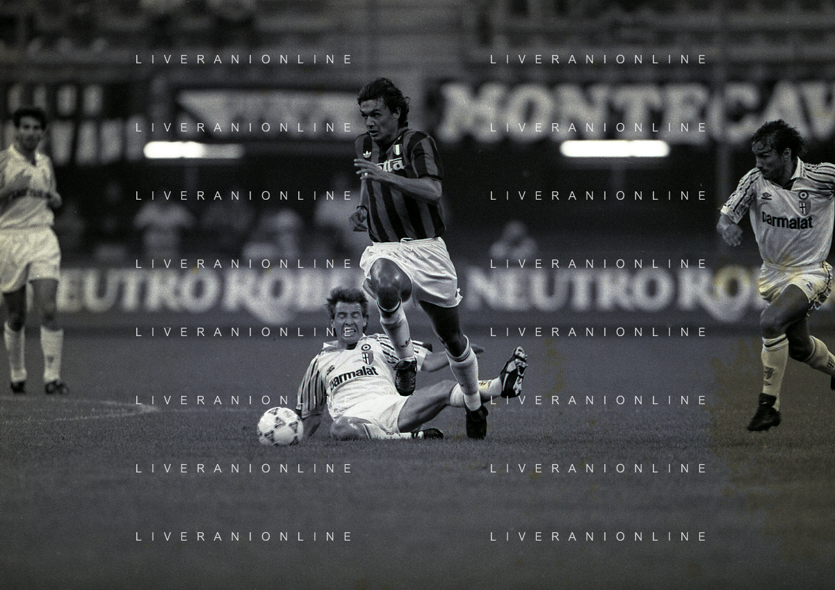 30-08-1992 MILANO FINALE DI SUPERCOPPA ITALIANA MILAN PARMA 2-1 NELLA FOTO PAOLO MALDINI E DANIELE ZORATTO AG ALDO LIVERANI SAS