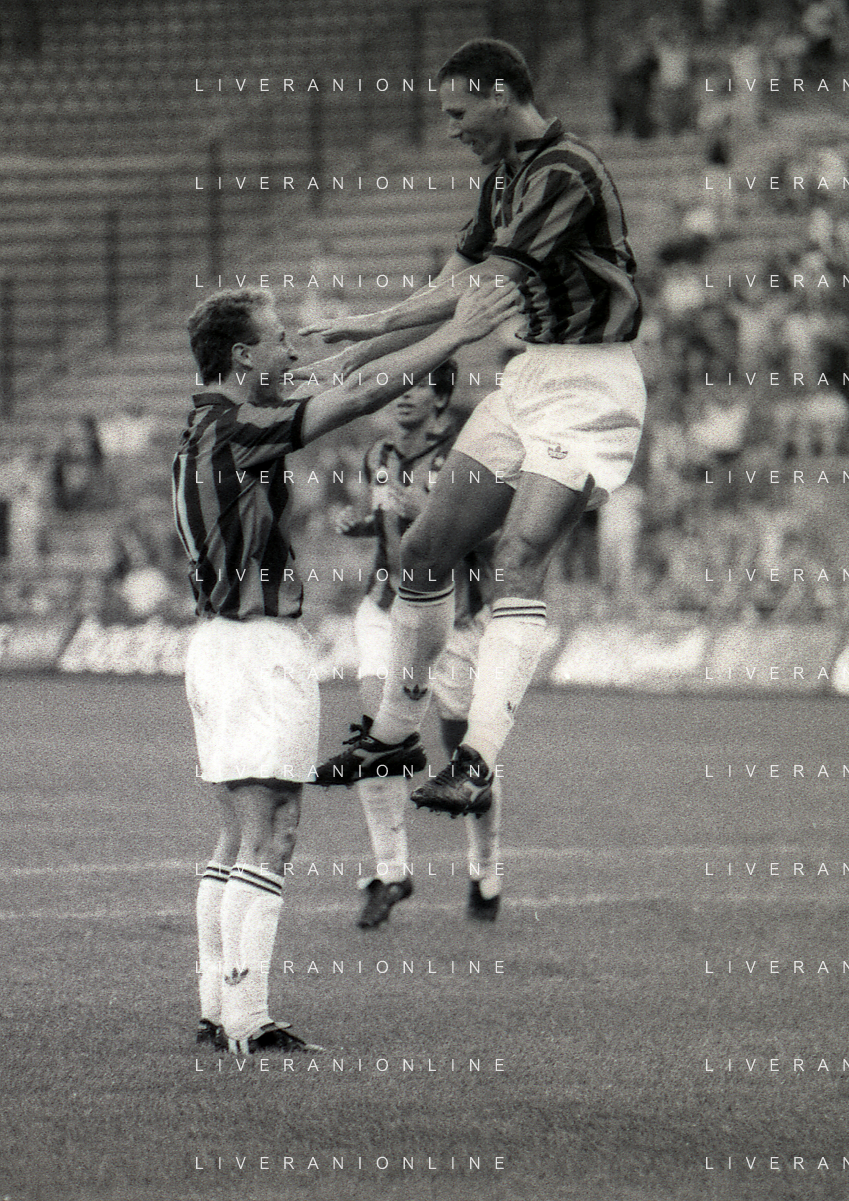 30-08-1992 MILANO FINALE DI SUPERCOPPA ITALIANA MILAN PARMA 2-1 NELLA FOTO CLAUDIO TAFFAREL E MARCO VAN BASTEN AG ALDO LIVERANI SAS