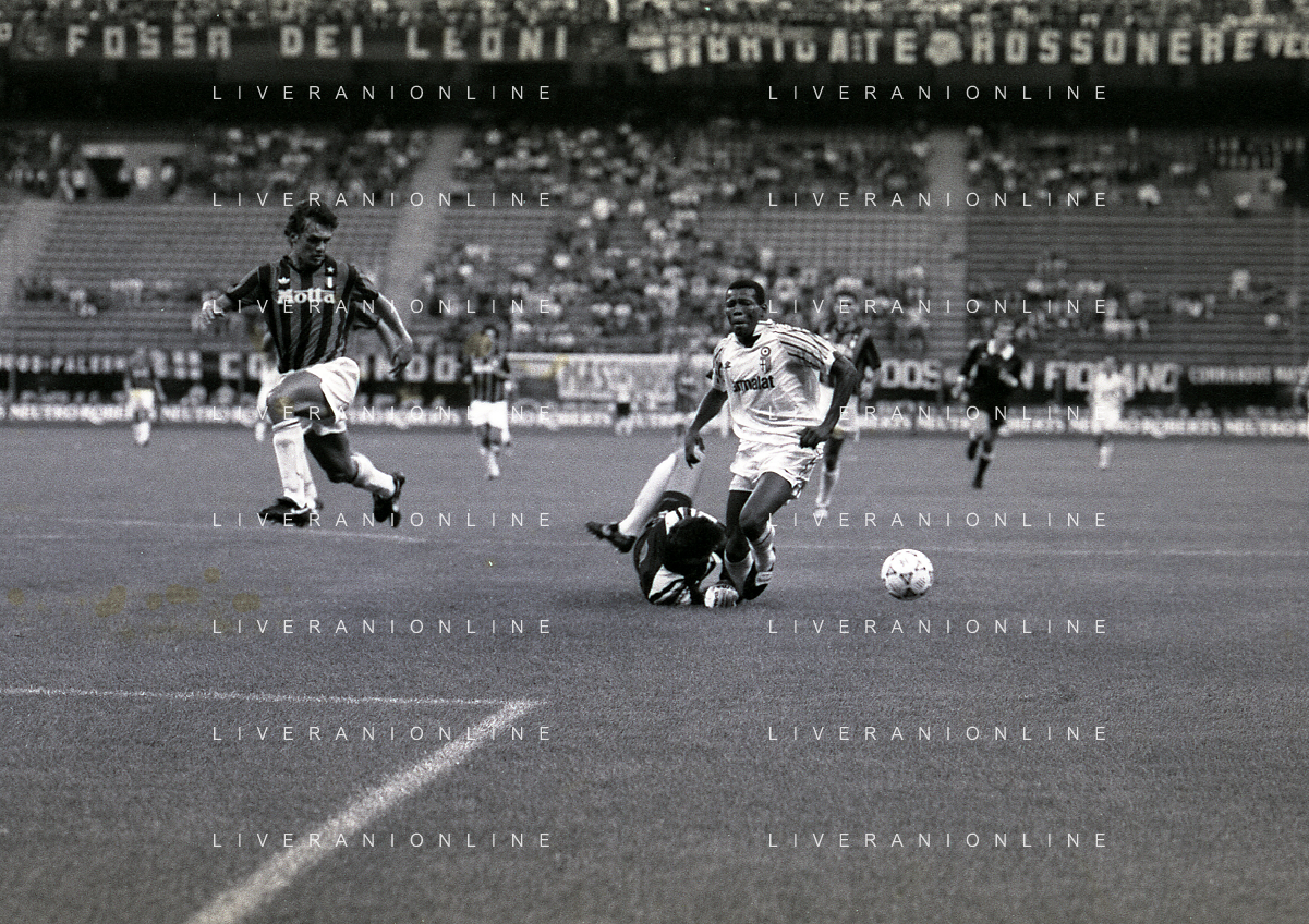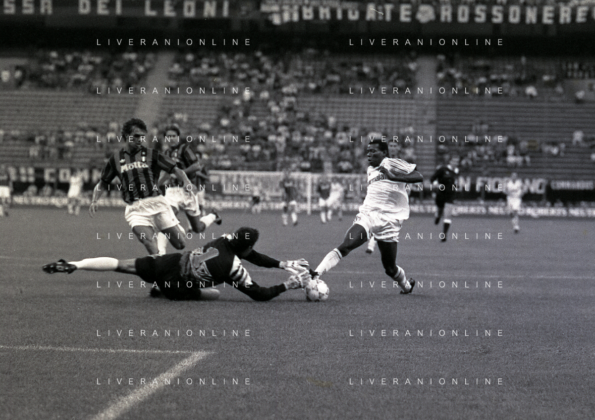 30-08-1992 MILANO FINALE DI SUPERCOPPA ITALIANA MILAN PARMA 2-1 NELLA FOTO FALLO DEL RIGORE PER IL PARMA FAUSTO ASPRILLA AG ALDO LIVERANI SAS