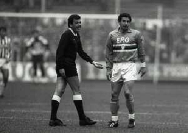 17-02-1991 GENOVA-CAMPIONATO DI CALCIO SERIE A SAMPDORIA JUVENTUS 1-0 NELLA FOTO ARBITRO ANGELO AMENDOLIA E GIANLUCA VIALLI AG ALDO LIVERANI SAS