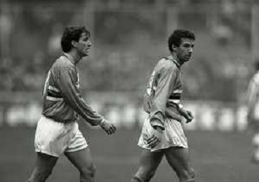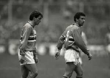 17-02-1991 GENOVA-CAMPIONATO DI CALCIO SERIE A SAMPDORIA JUVENTUS 1-0 NELLA FOTO GIANLUCA VIALLI E ROBERTO MANCINI AG ALDO LIVERANI SAS