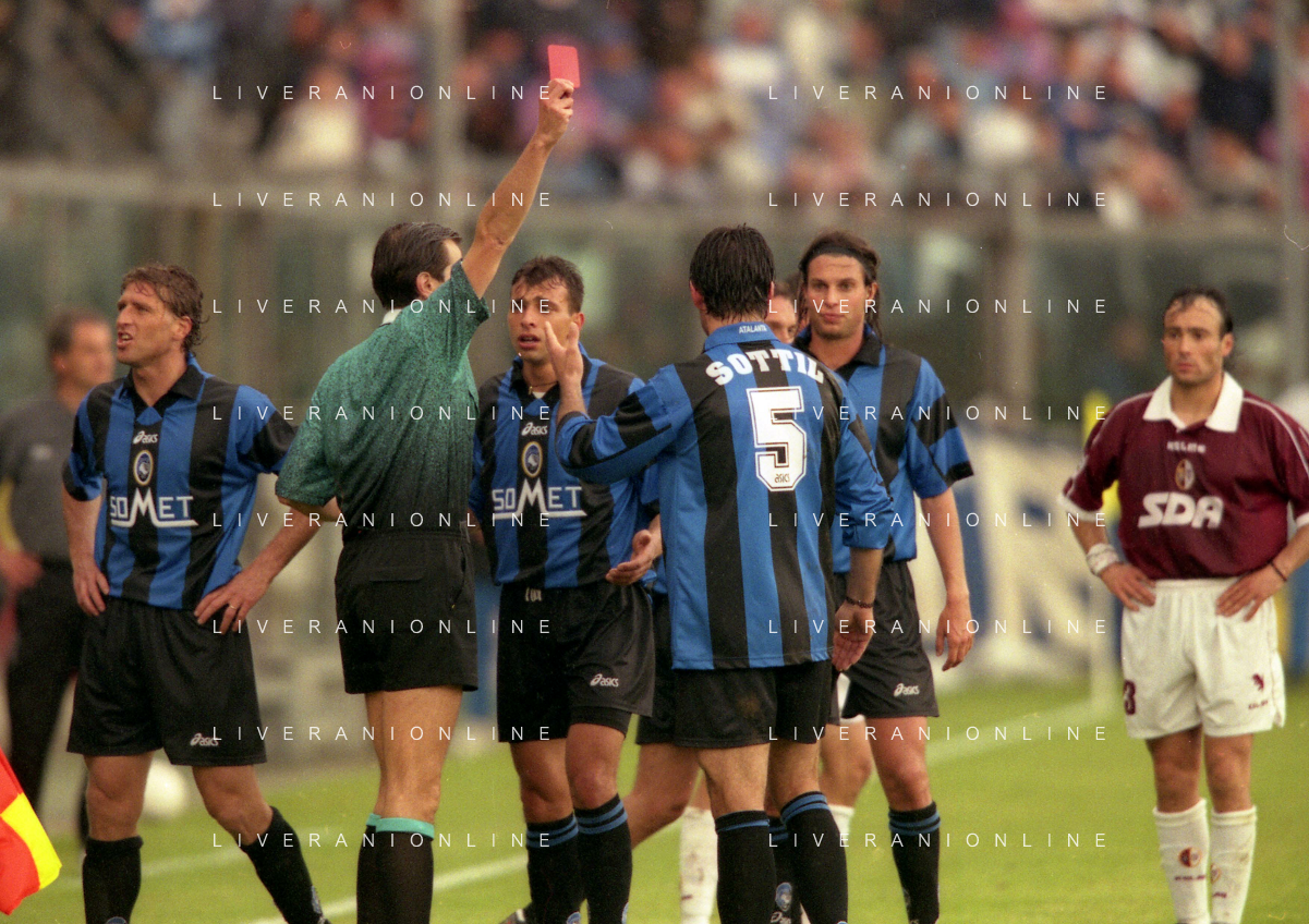 25-04-1999 CAMPIONATO DI CALCIO SERIE B ATALANTA TORINO 1-0 NELLA FOTO ARBITRO FAUSTI CON IL CARTELLINO ROSSO AG ALDO LIVERANI SAS