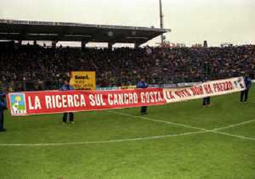 09-11-1997 BERGAMO CAMPIONATO DI CALCIO SERIE A -ATALANTA INTER 1-2 NELLA FOTO STRISCIONE PRO ASSOCIAZIONE CANCRO AG ALDO LIVERANI SAS