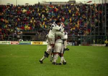 09-11-1997 BERGAMO CAMPIONATO DI CALCIO SERIE A -ATALANTA INTER 1-2 NELLA FOTO ABBRACCI GIOCATORI INTER AG ALDO LIVERANI SAS