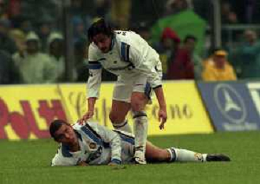 09-11-1997 BERGAMO CAMPIONATO DI CALCIO SERIE A -ATALANTA INTER 1-2 NELLA FOTO LUIGI SIMONI CON ZE ELIAS AG ALDO LIVERANI SAS