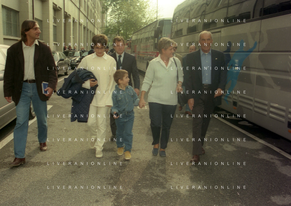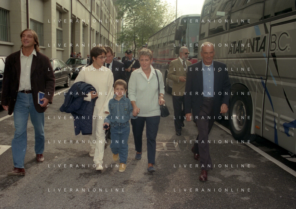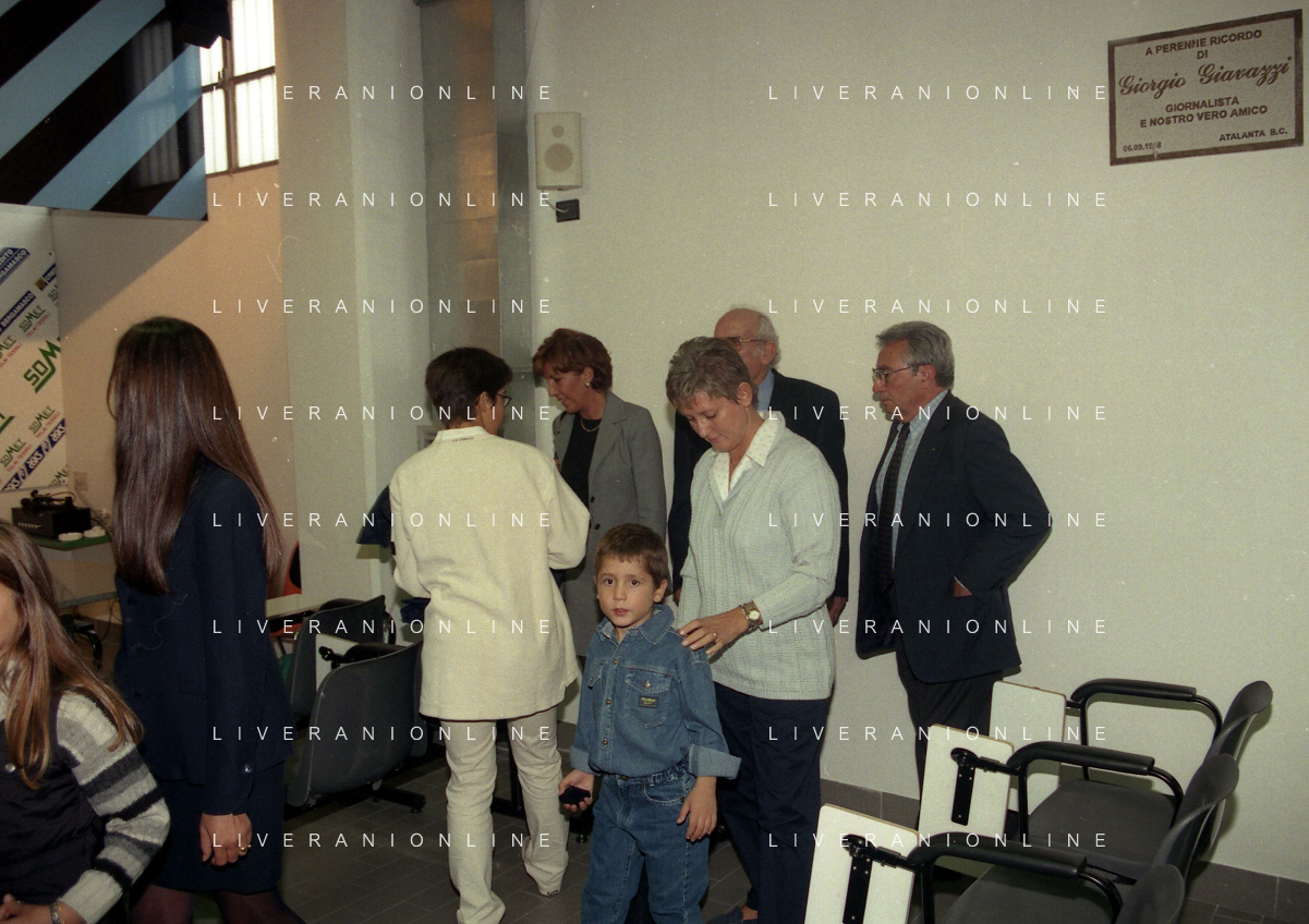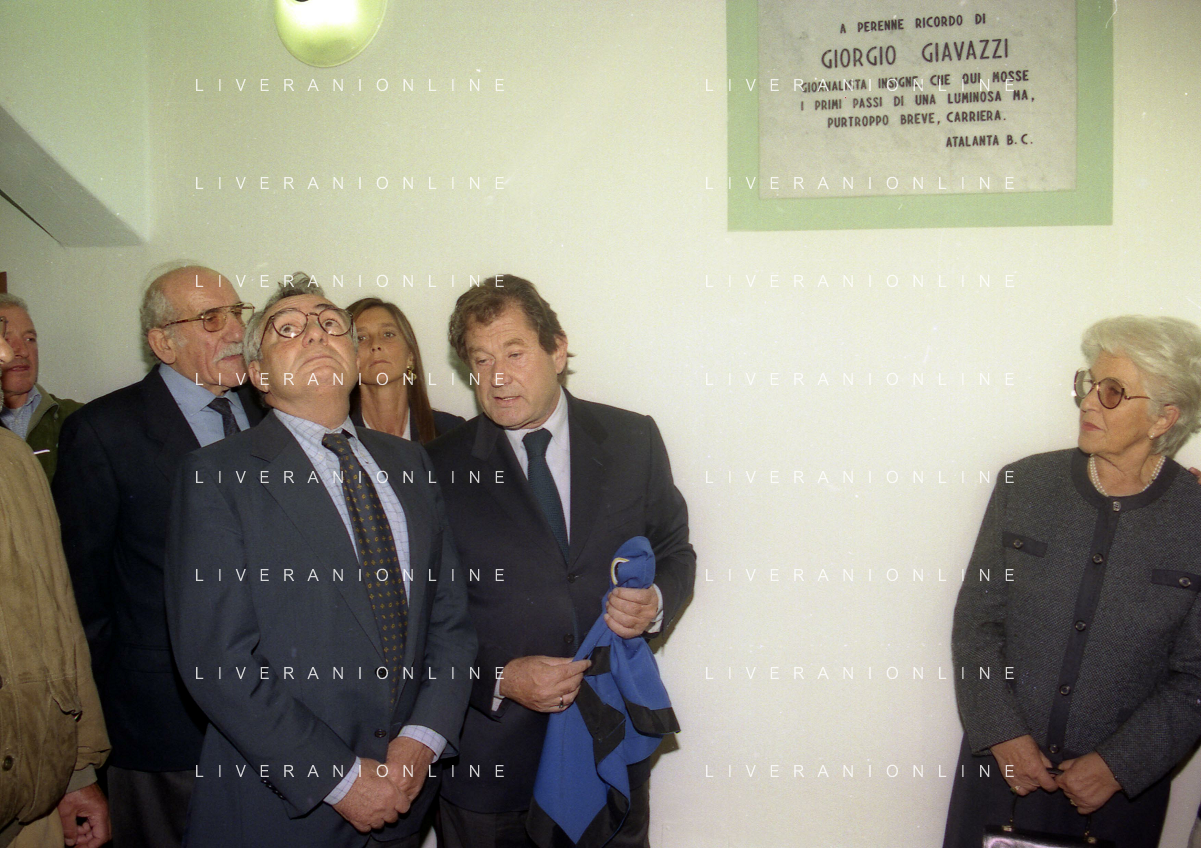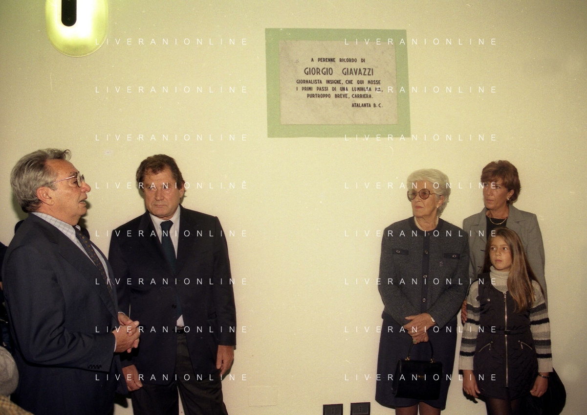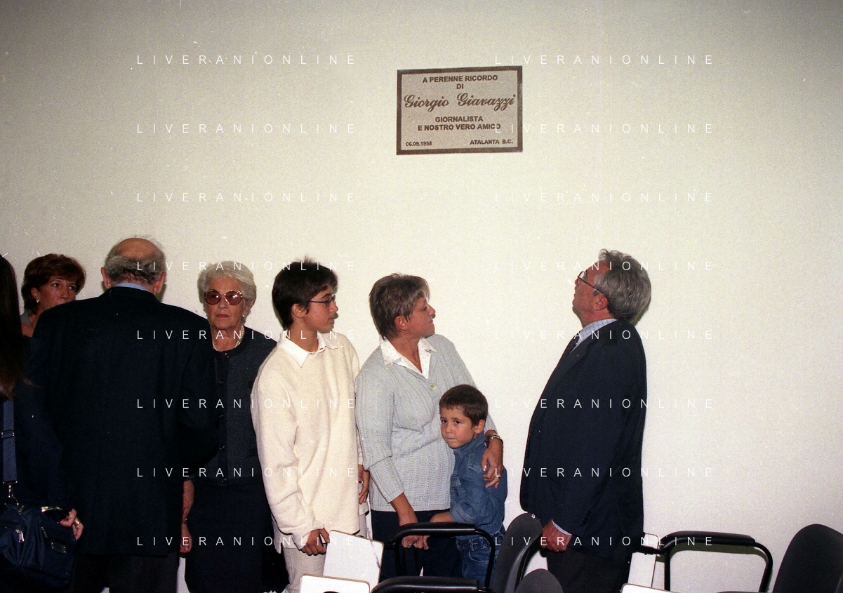 27-09-1998 -BERGAMO CAMPIONATO DI CALCIO SERIE B ATALANTA TERNANA 1-0 NELLA FOTO IL PRESIDENTE DELL'ATALANTA IVAN RUGGERI CON CANDIDO CANNAVO' E I FAMIGLIARI DI GIORGIO GIAVAZZI PER L'INTESTAZIONE DELLA SALA STAMPA DELLO STADIO DI BERGAMO IN MEMORIA DEL GIORNALISTA GIORGIO GIAVAZZI AG ALDO LIVERANI SAS