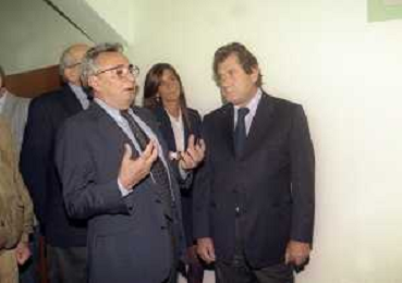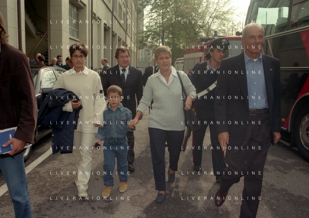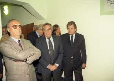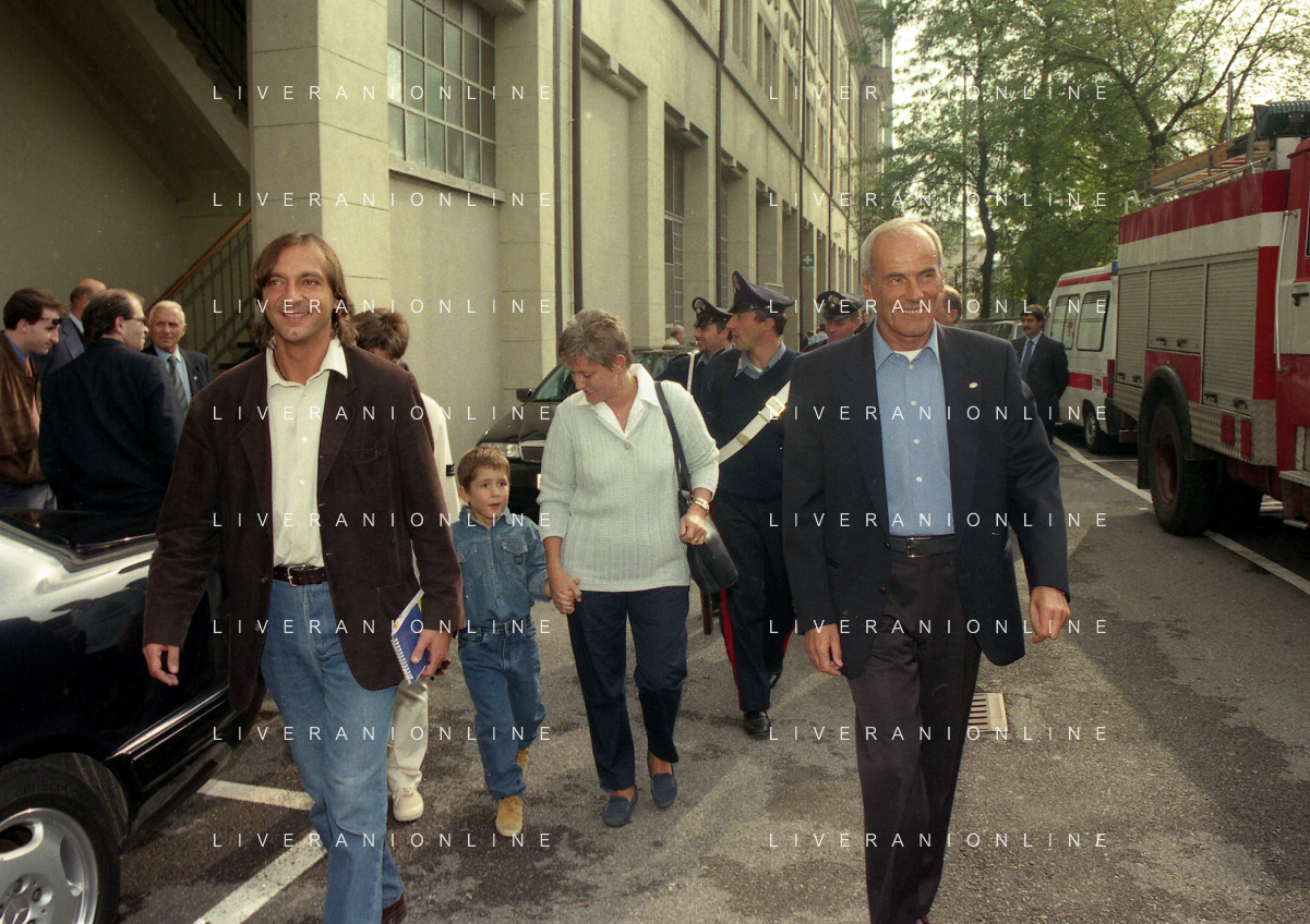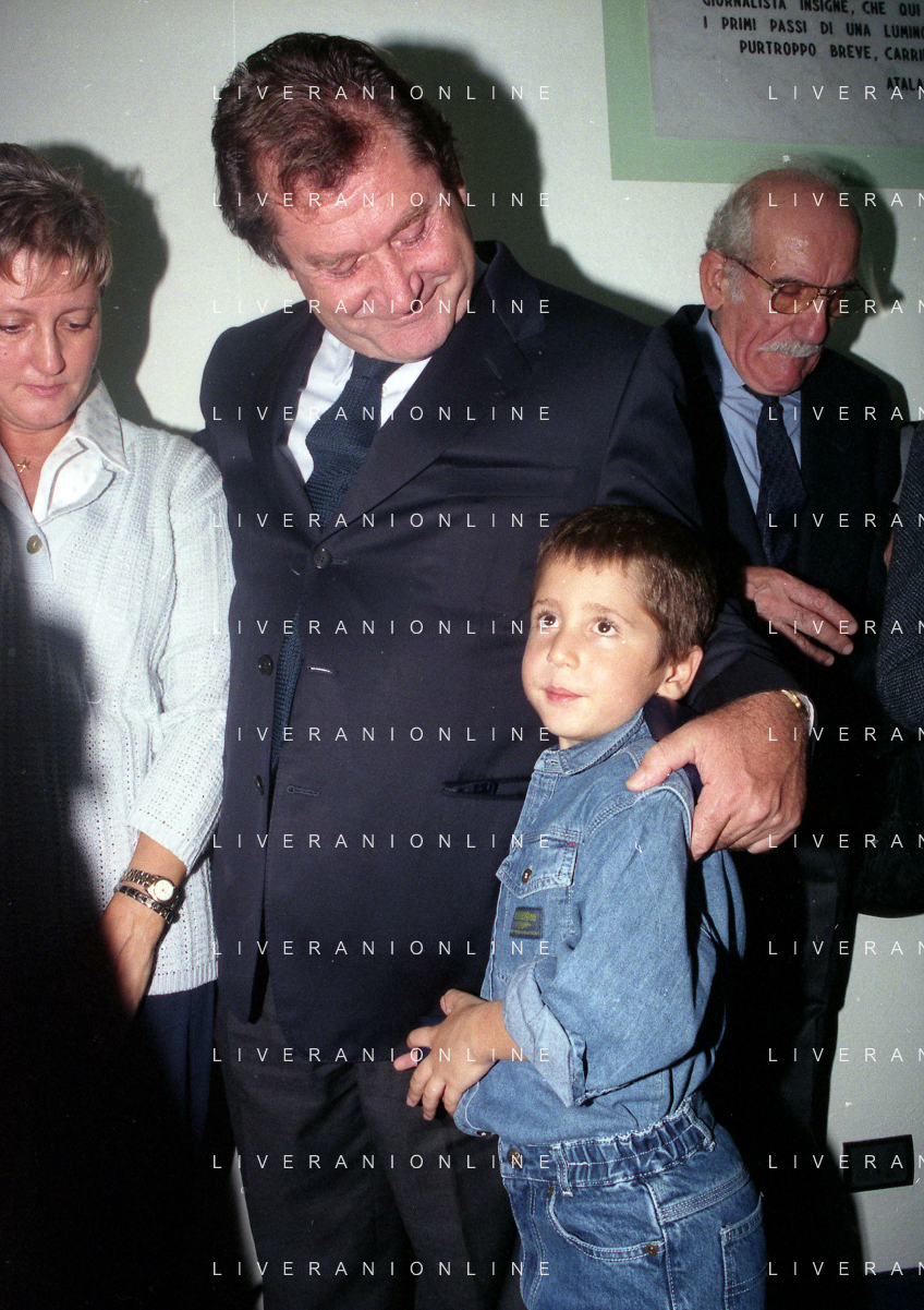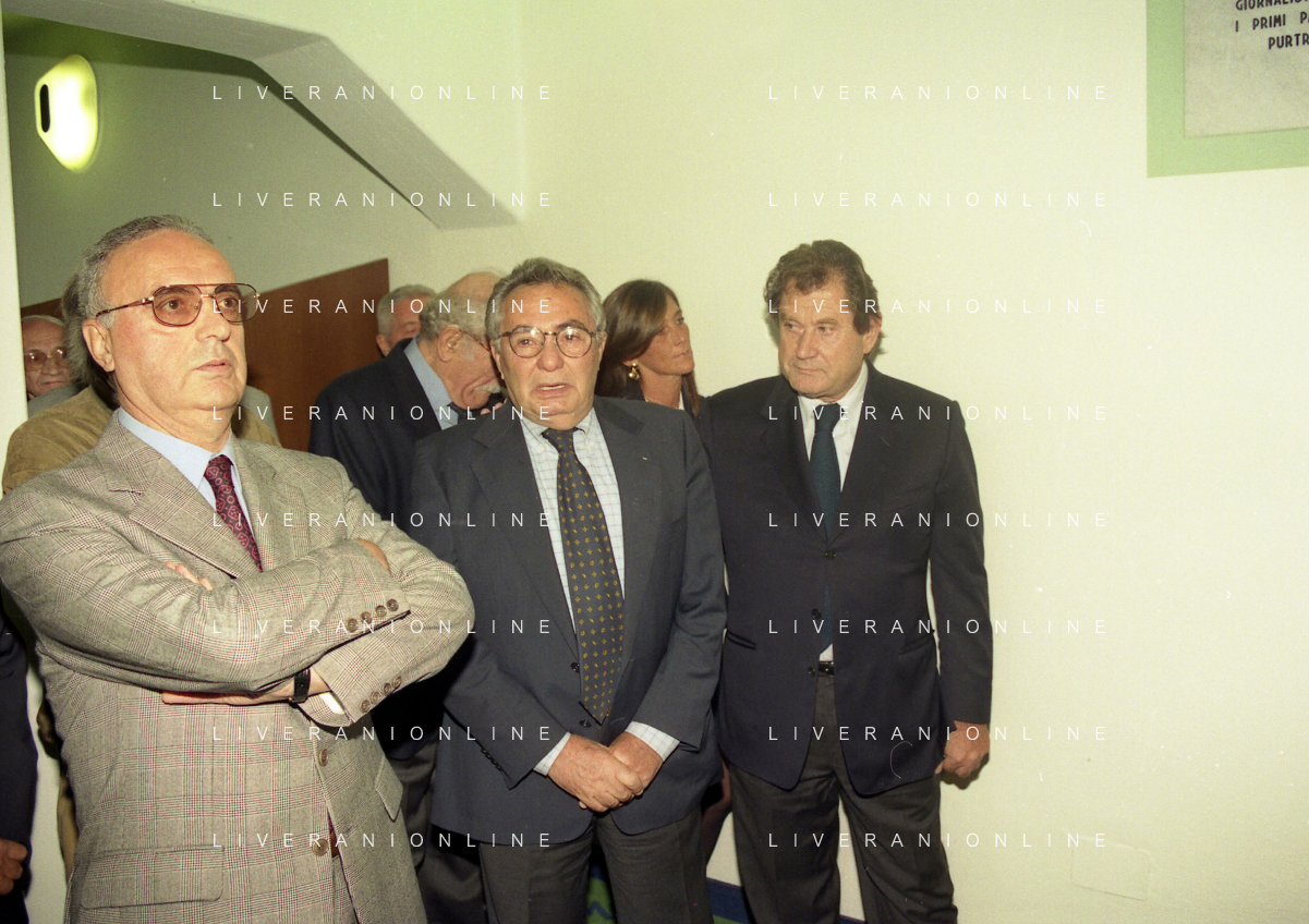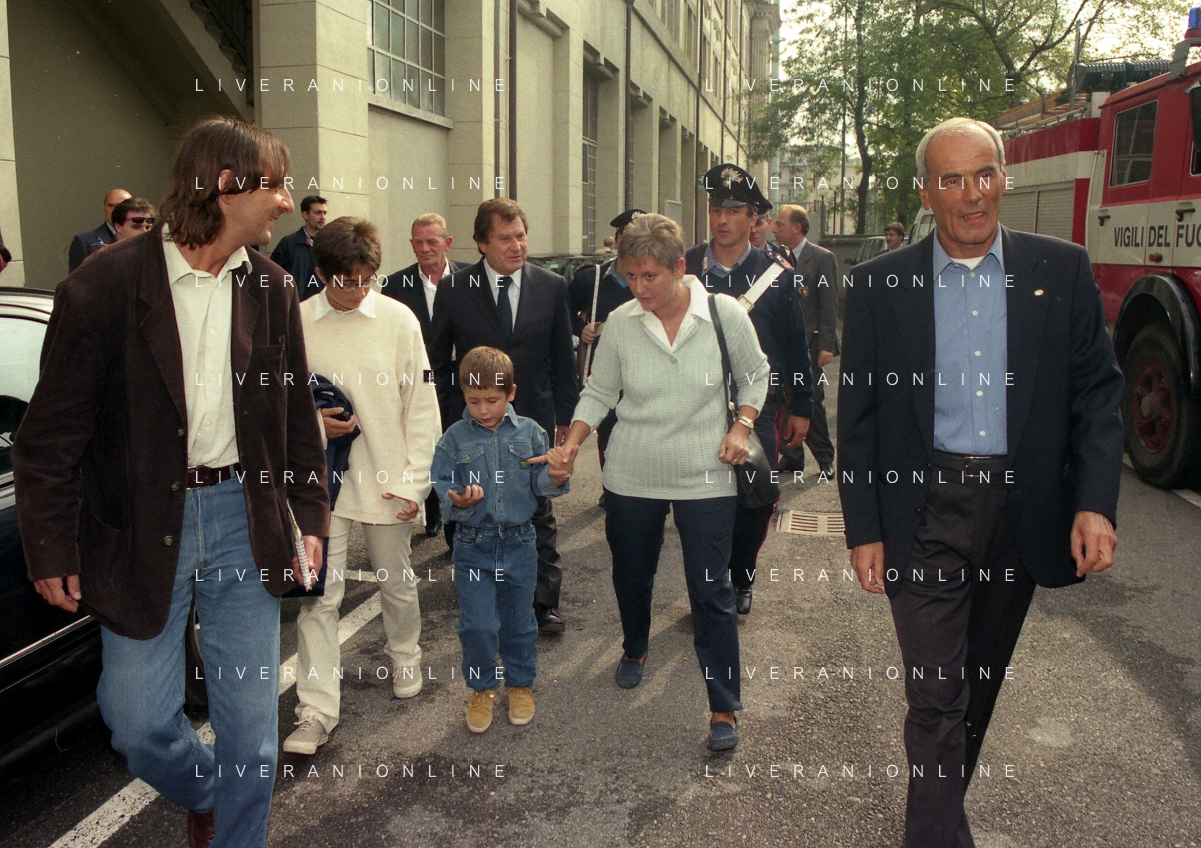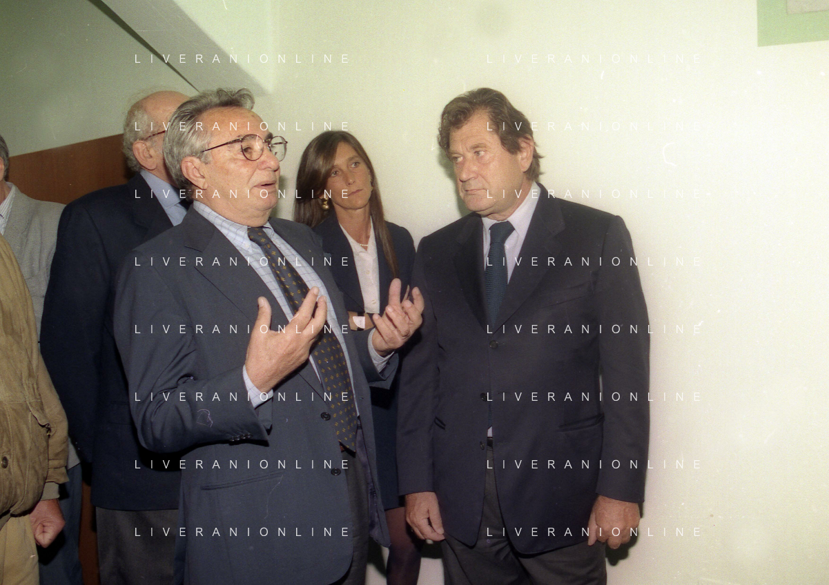 27-09-1998 -BERGAMO CAMPIONATO DI CALCIO SERIE B ATALANTA TERNANA 1-0 NELLA FOTO IL PRESIDENTE DELL'ATALANTA IVAN RUGGERI CON CANDIDO CANNAVO' E I FAMIGLIARI DI GIORGIO GIAVAZZI PER L'INTESTAZIONE DELLA SALA STAMPA DELLO STADIO DI BERGAMO IN MEMORIA DEL GIORNALISTA GIORGIO GIAVAZZI AG ALDO LIVERANI SAS