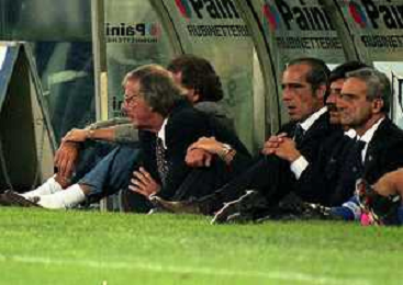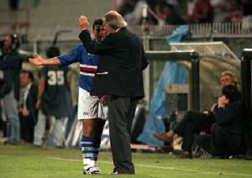 1997 GENOVA-AMICHEVOLE SAMPDORIA UDINESE NELLA FOTO MENOTTI CESAR LUIS ALLENATORE SAMPDORIA CON EMANUELE PESARESI AG ALDO LIVERANI SAS