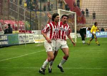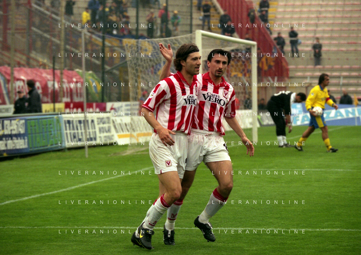 26-03-2000 VICENZA-CAMPIONATO DI CALCIO SERIE B VICENZA FERMANA 4-0 NELLA FOTO ESULTANZA GIANNI COMANDINI CON ANTONINO BERNARDINI AG ALDO LIVERANI SAS