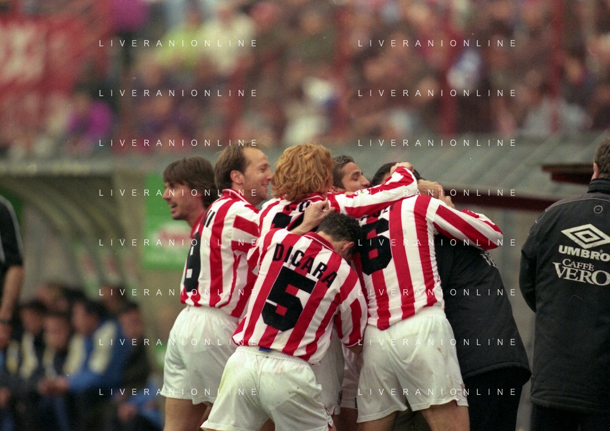 26-03-2000 VICENZA-CAMPIONATO DI CALCIO SERIE B VICENZA FERMANA 4-0 NELLA FOTO ABBRACCI GIOCATORI VICENZA AG ALDO LIVERANI SAS