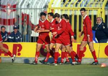 16-02-1997 PIACENZA-CAMPIONATO DI CALCIO SERIE A PIACENZA NAPOLI 1-0 NELLA FOTO ABBRACCI GIOCATORI PIACENZA AG ALDO LIVERANI SAS