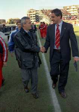 16-02-1997 PIACENZA-CAMPIONATO DI CALCIO SERIE A PIACENZA NAPOLI 1-0 NELLA FOTO LUIGI SIMONI ALLENATORE NAPOLI E BORTOLO MUTTI ALLENATORE PIACENZA AG ALDO LIVERANI SAS