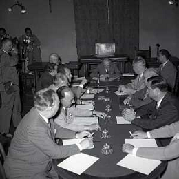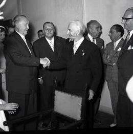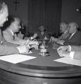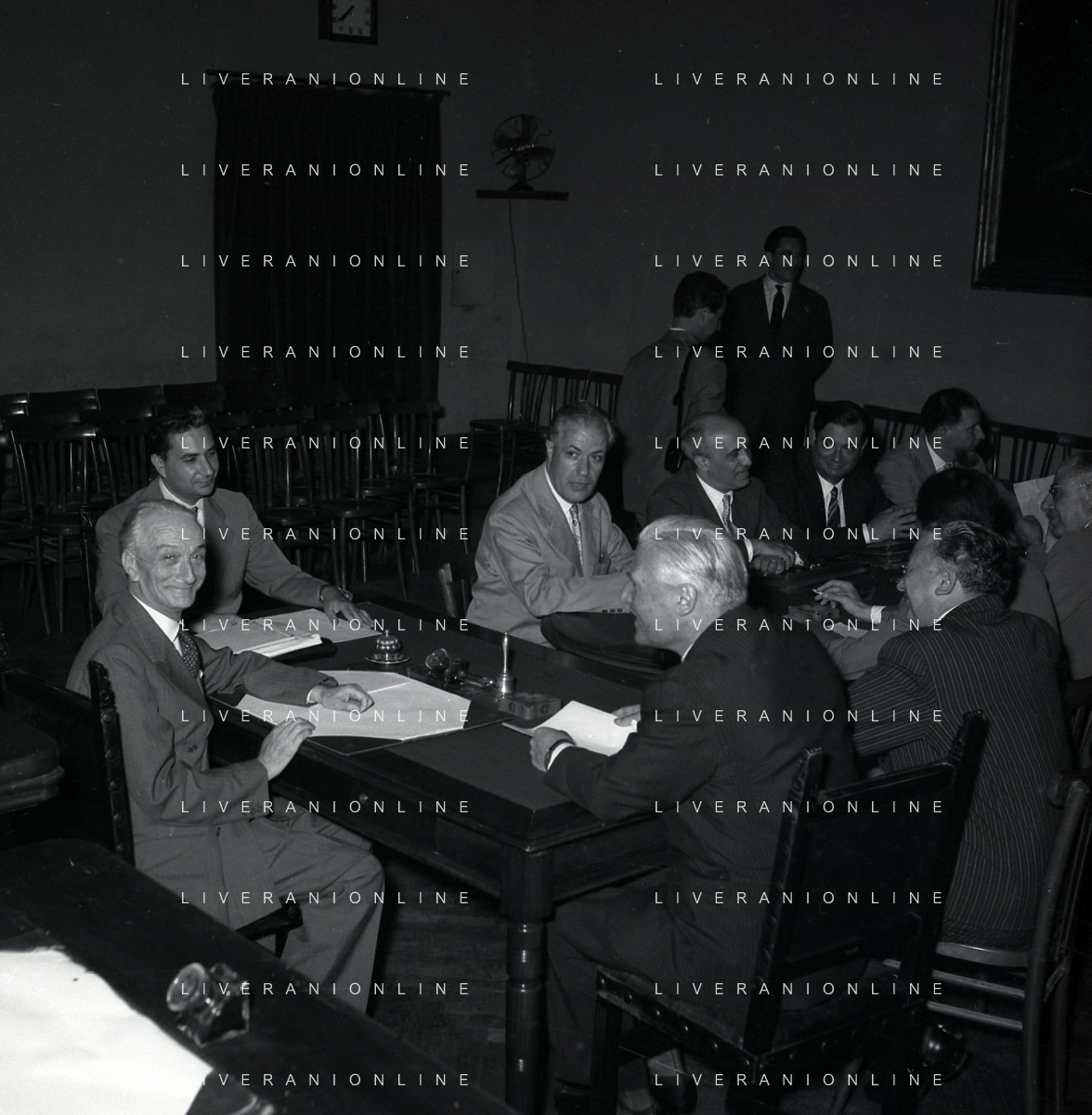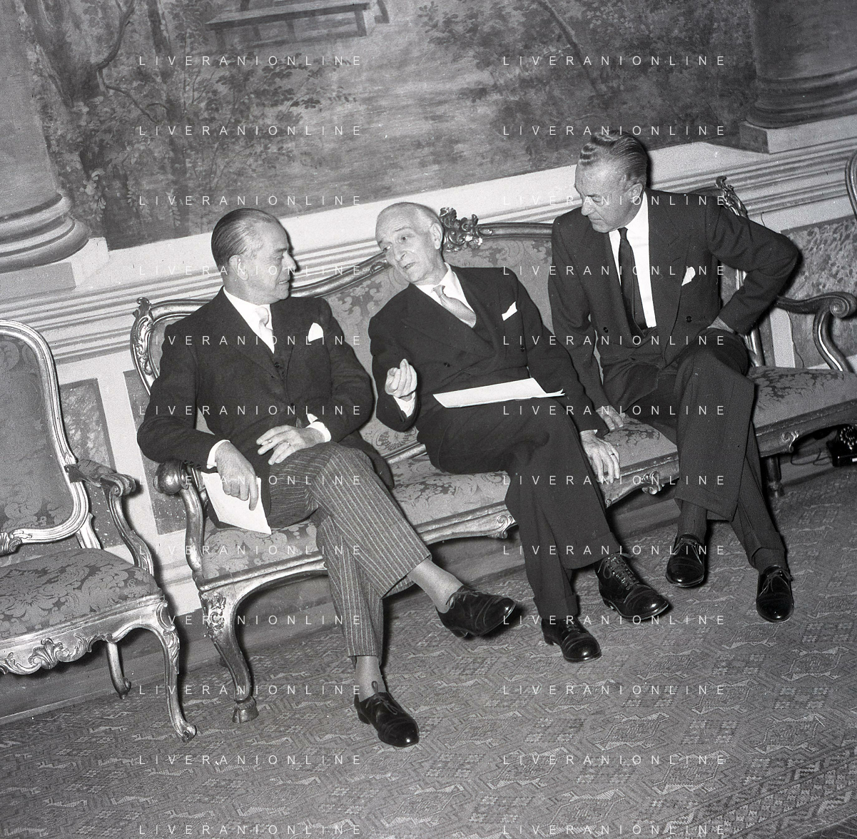 ROMA RIUNIONE CON L'ADESIONE DELL'ITALIA ALL'ONU CON ANTONIO SEGNI NELLA FOTO ANTONIO SEGNI-MARTINO-CARANDINI AG ALDO LIVERANI SAS