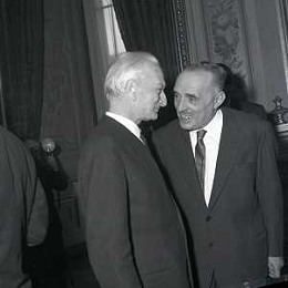 RETROSPETIVA ANTONIO SEGNI RIUNIONE AL VIMINALE A ROMA NELLA FOTO ANTONIO SEGNI CON AMINTORE FANFANI AG ALDO LIVERANI SAS