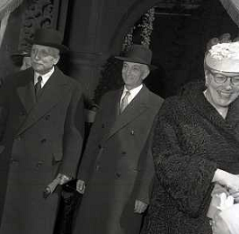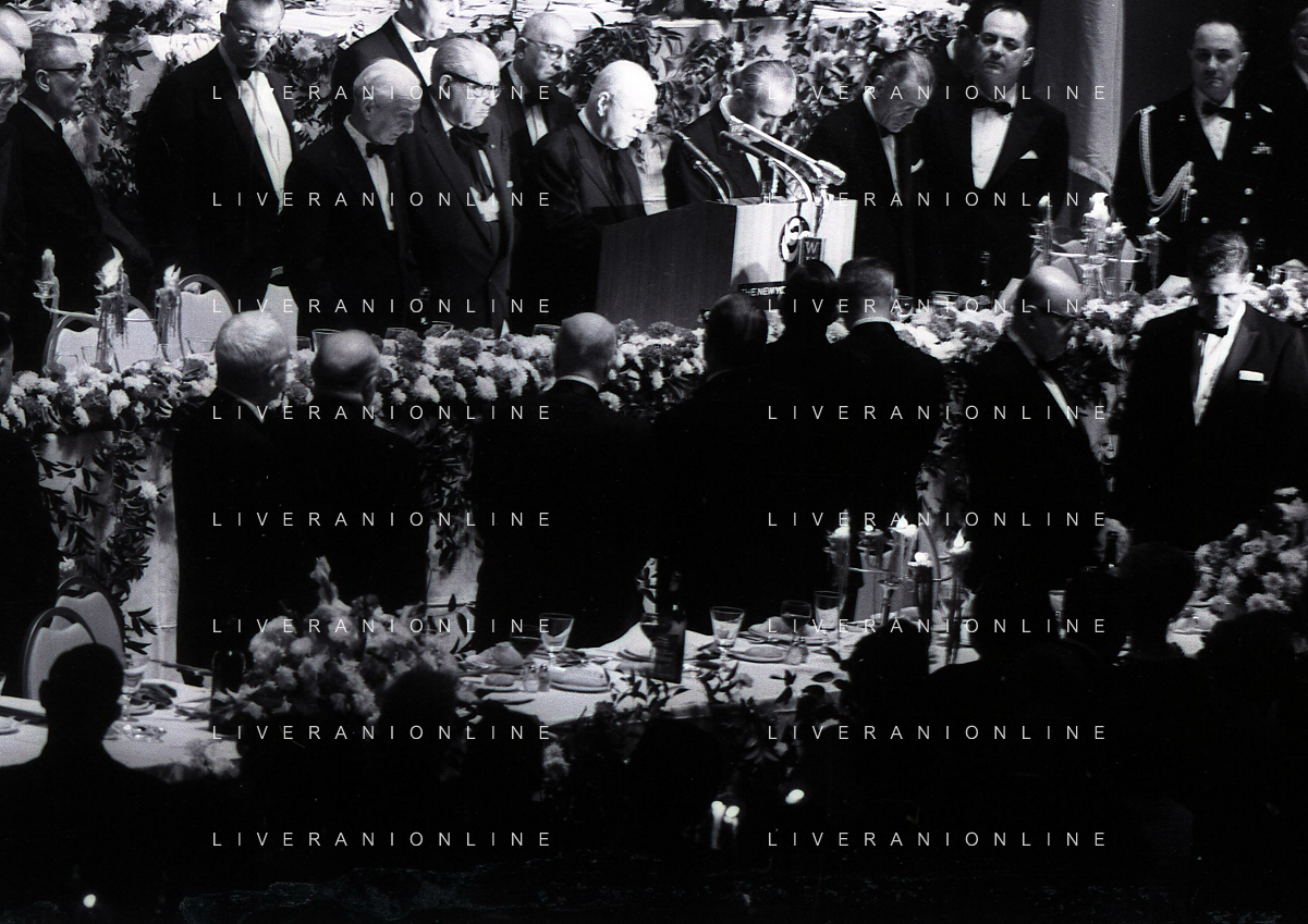 1963-1964 NEW YORK ANTONIO SEGNI CON GIUSEPPE SARAGAT E IL CARDINALE Francis Joseph Spellman NELLA FOTO LAURA SEGNI AG ALDO LIVERANI SAS