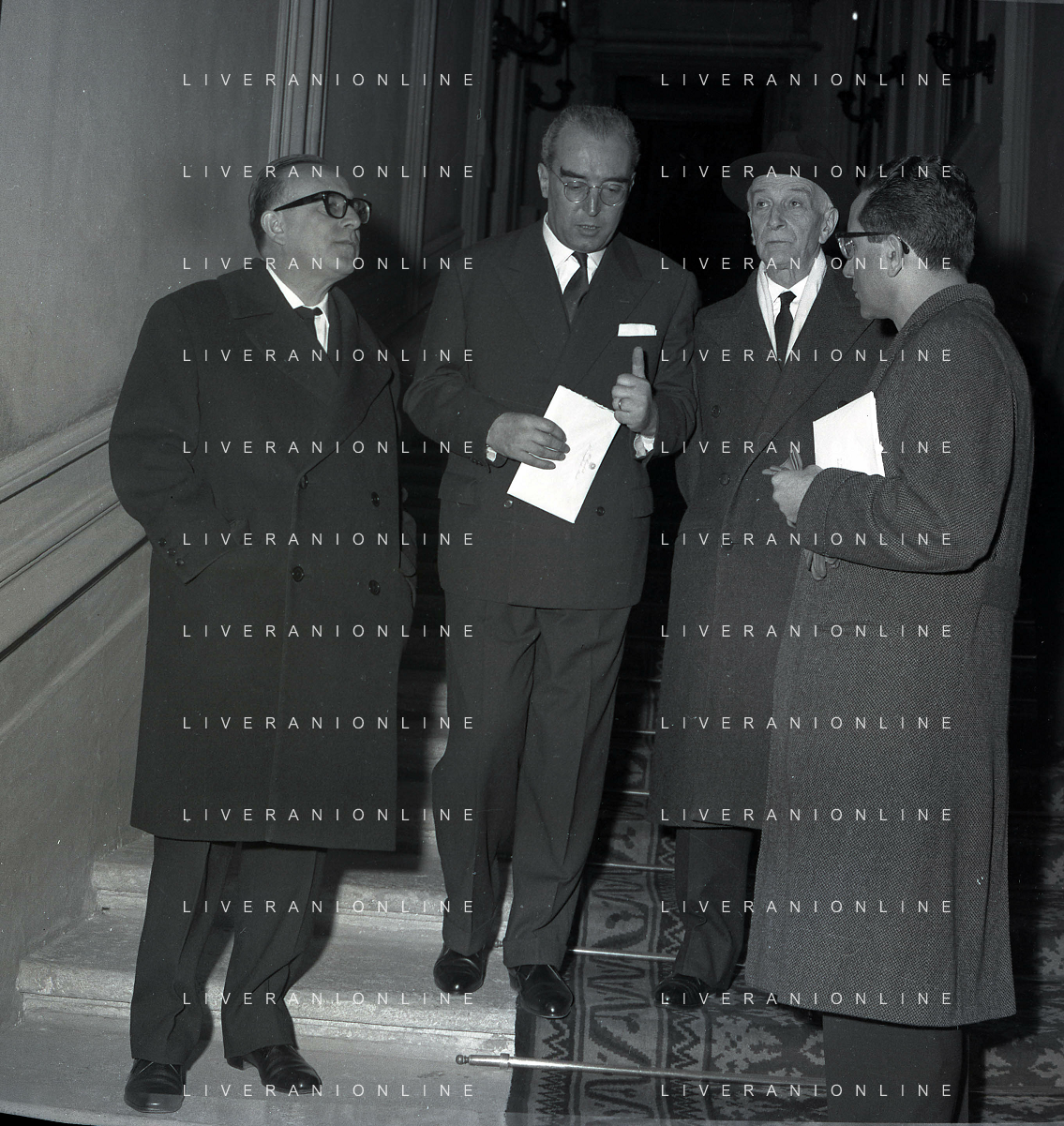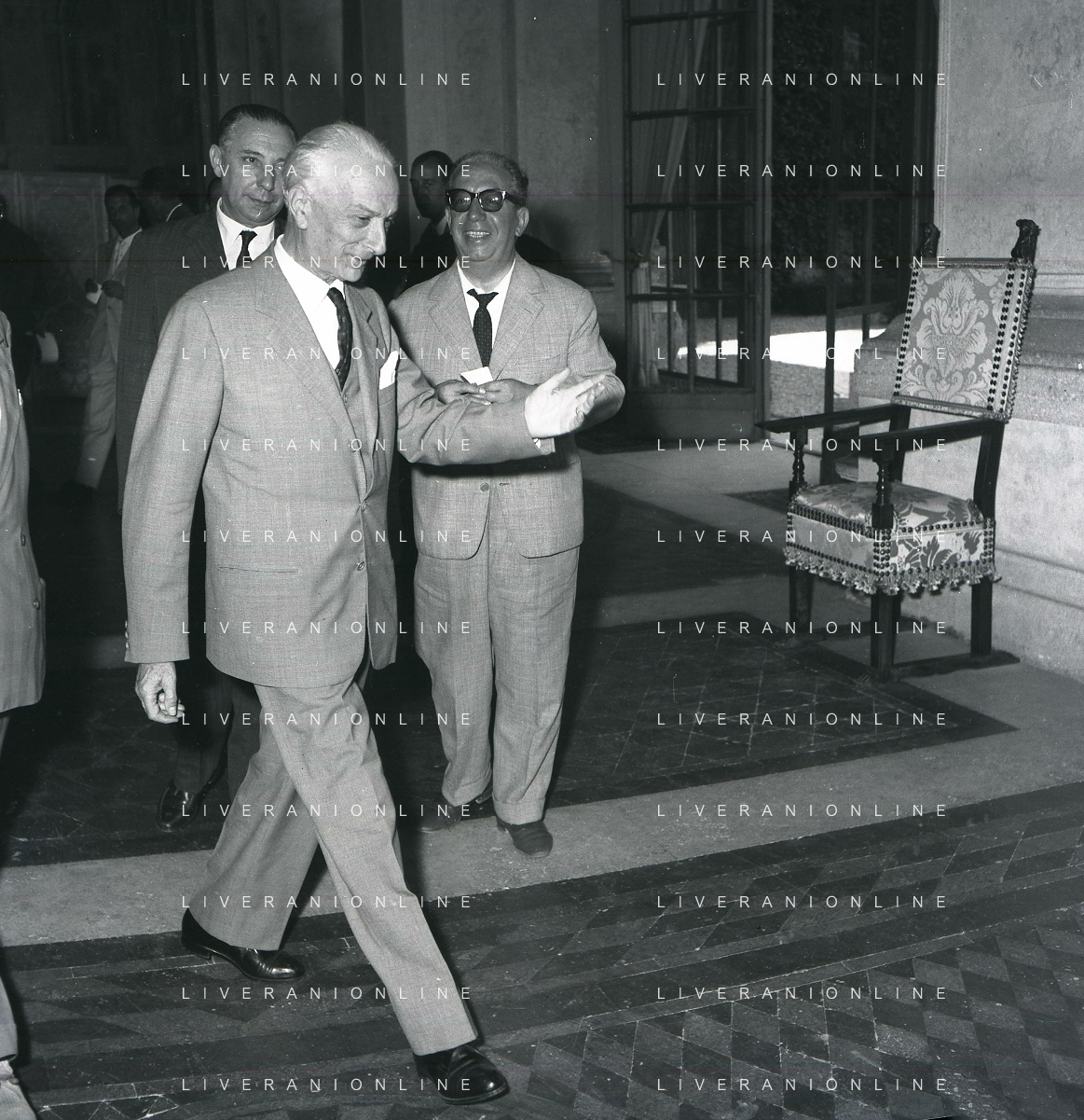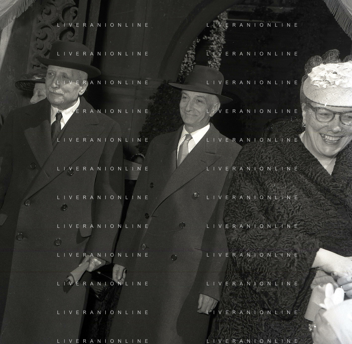 1963 MILANO PRIMA DELLA SCALA NELLA FOTO ANTONIO SEGNI CON ANTONIO GHIRIGHELLI SOVRAINTENDENTE DELLA SCALA AG ALDO LIVERANI SAS