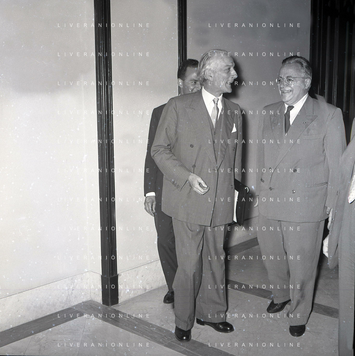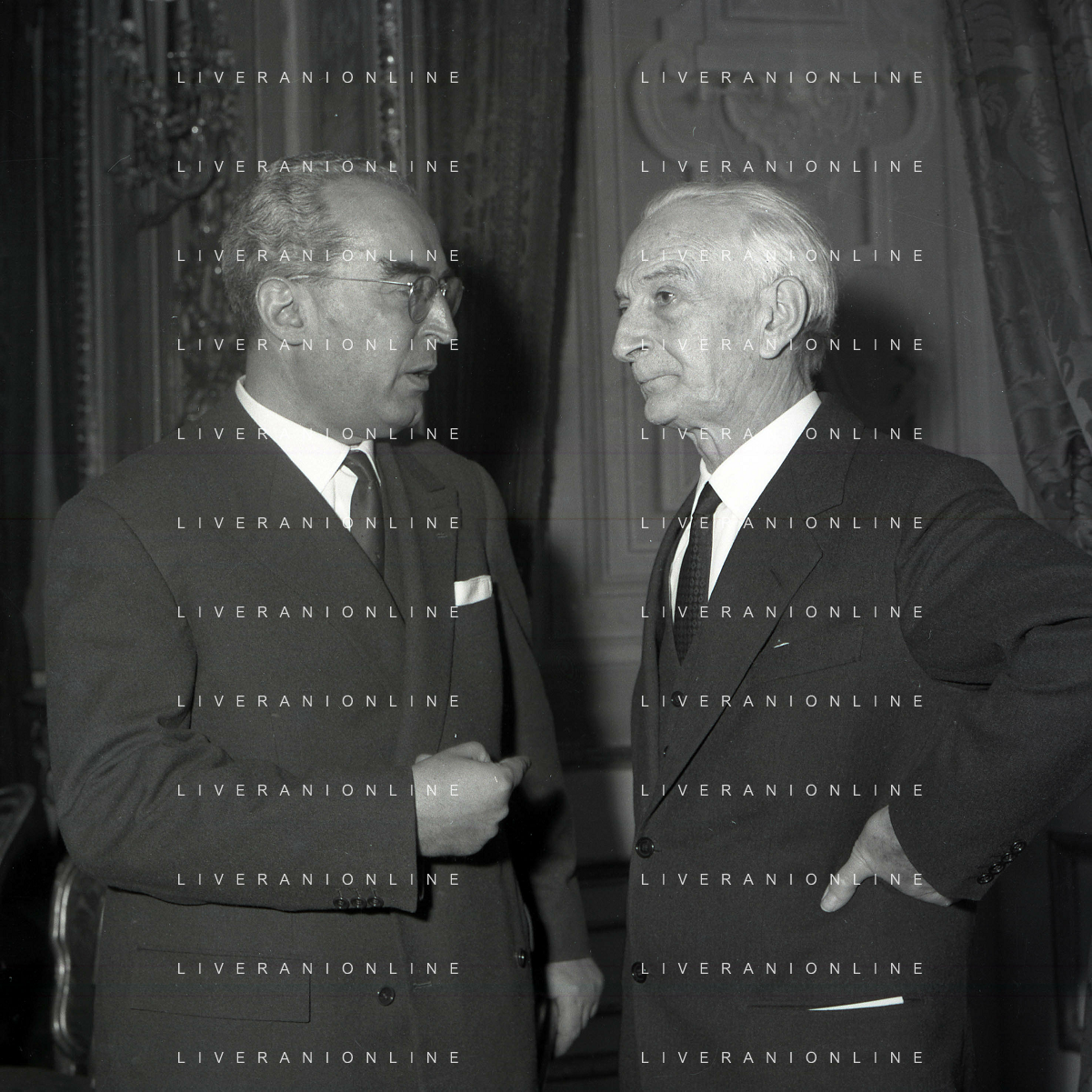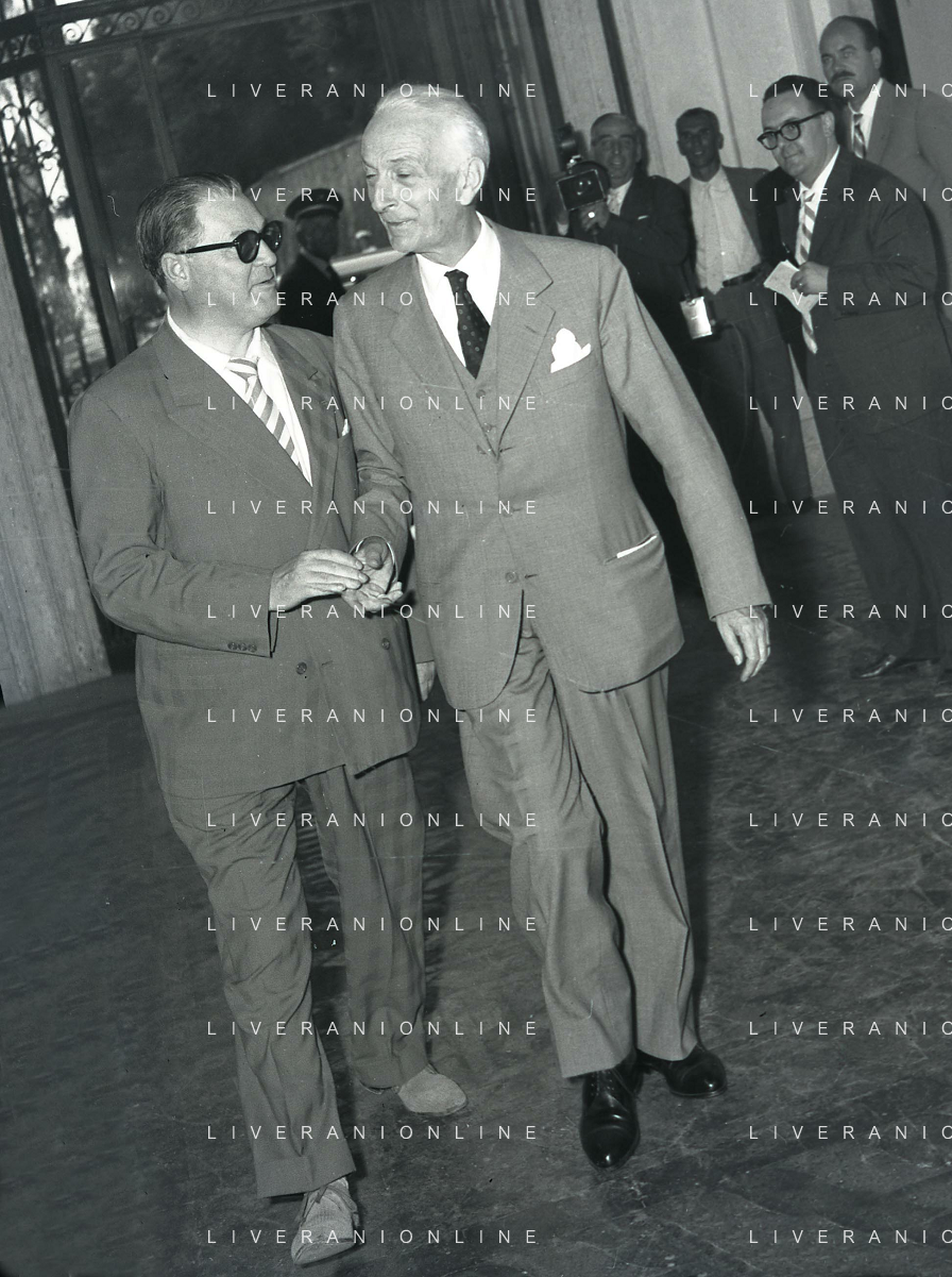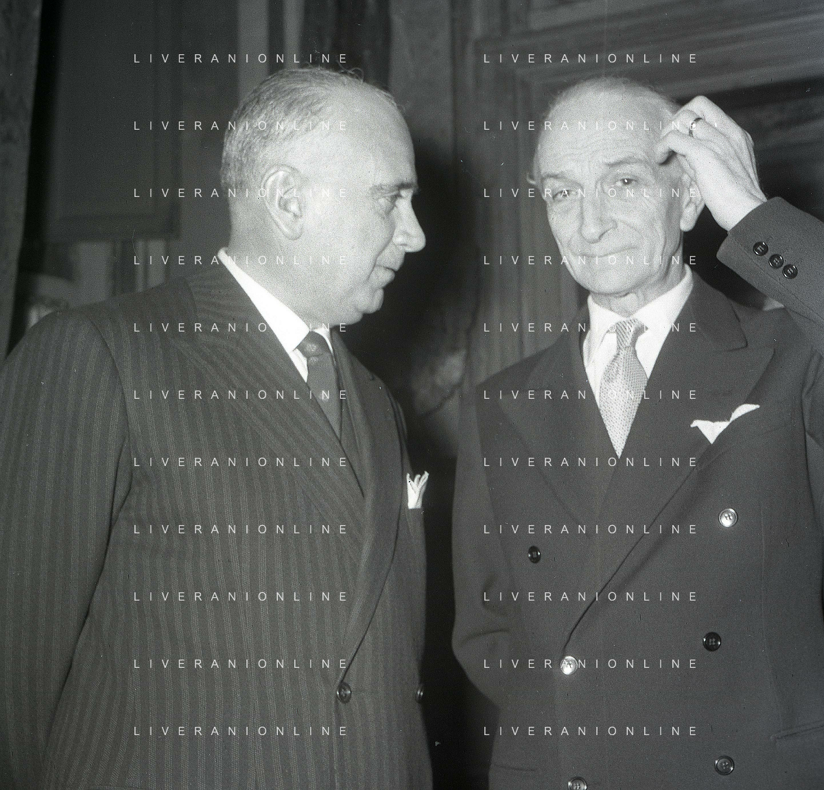 1952 RETROSPETTIVA ANTONIO SEGNI POLITICO NELLA FOTO ANTONIO SEGNI CON GIOVANNI MALAGODI AG ALDO LIVERANI SAS