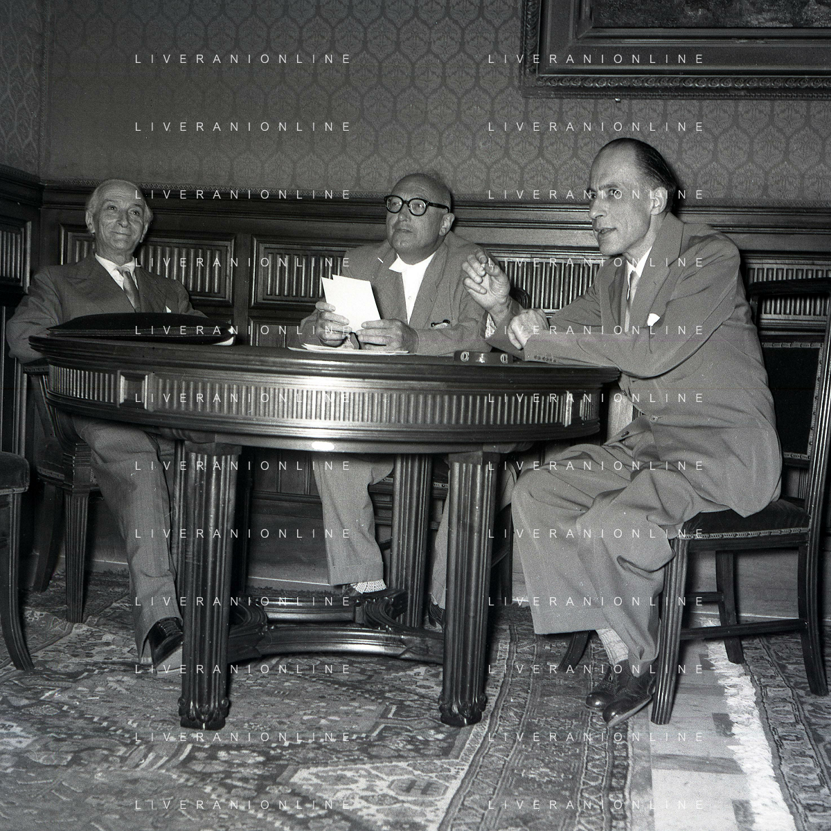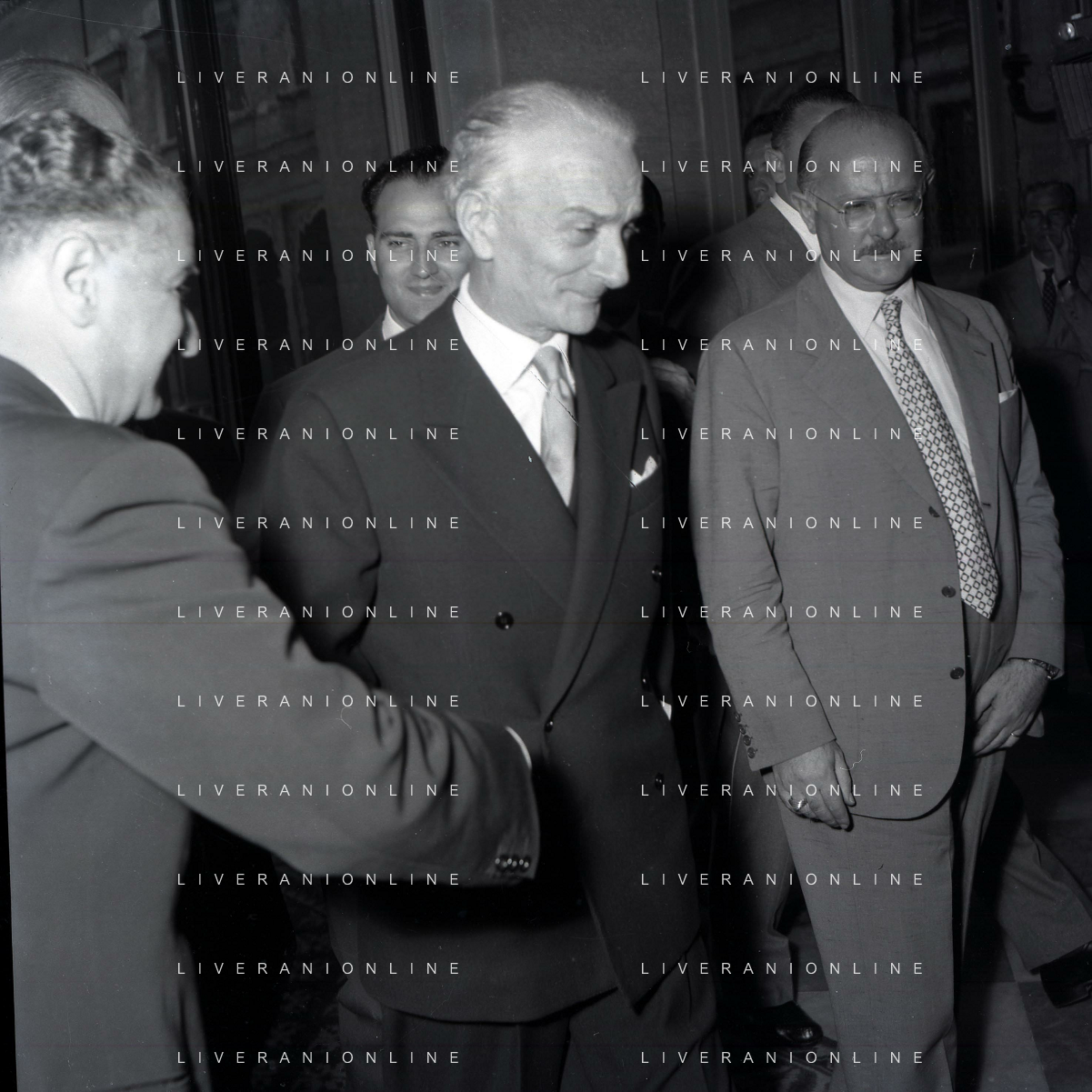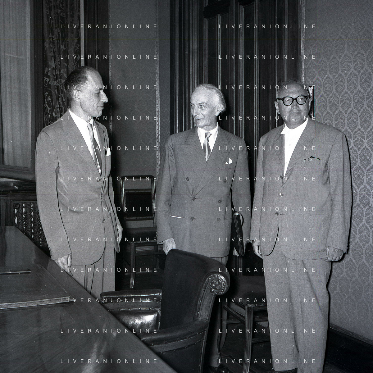 1953 RETROSPETTIVA ANTONIO SEGNI POLITICO NELLA FOTO ANTONIO SEGNI CON NENNI PIETRO E MORANTI RODOLFO AG ALDO LIVERANI SAS