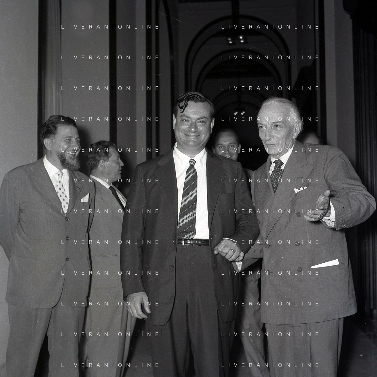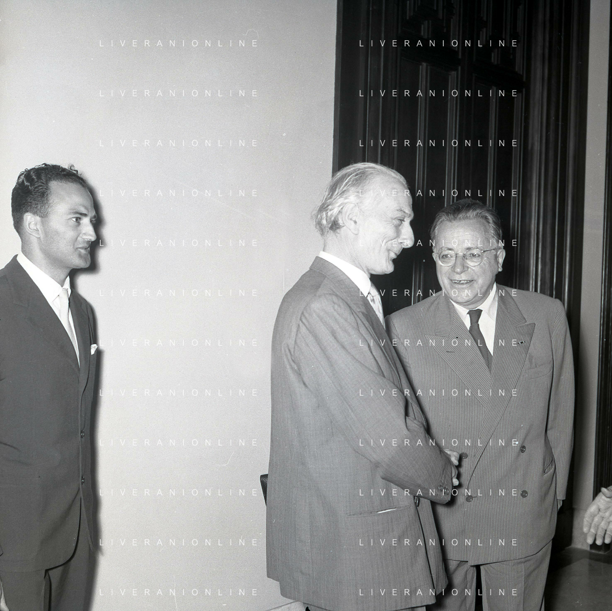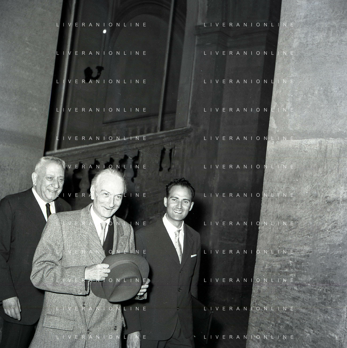 1953 RETROSPETTIVA ANTONIO SEGNI POLITICO NELLA FOTO ANTONIO SEGNI CON NENNI PIETRO E MORANTI RODOLFO AG ALDO LIVERANI SAS