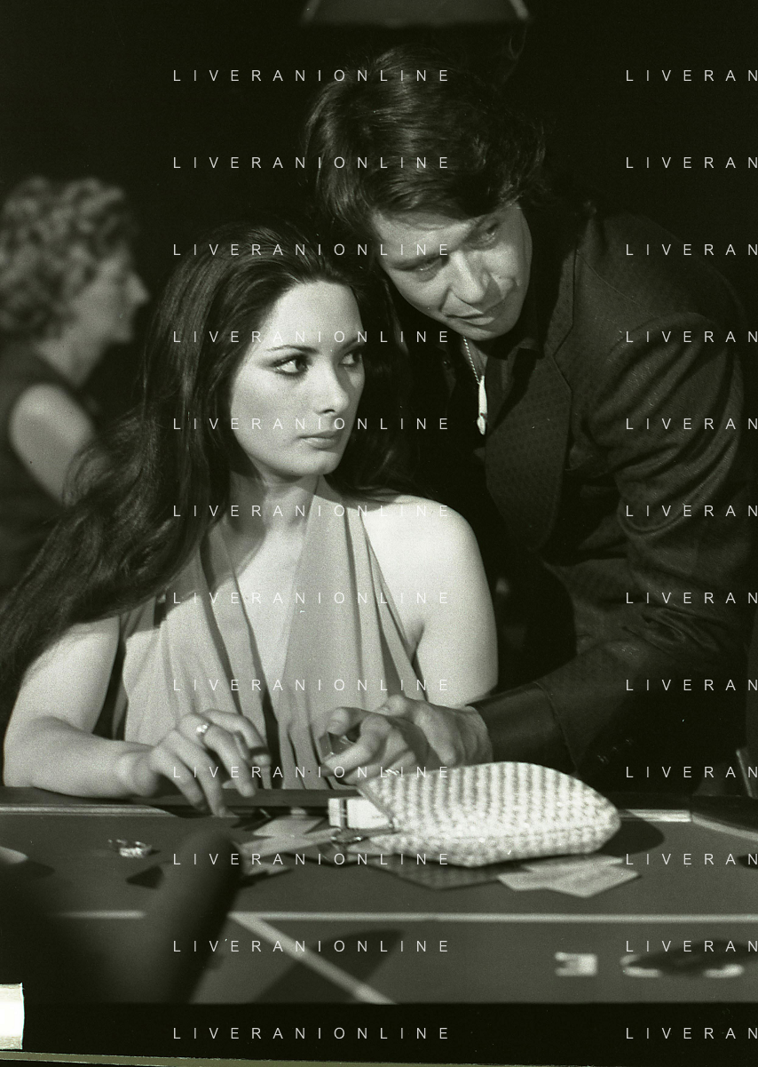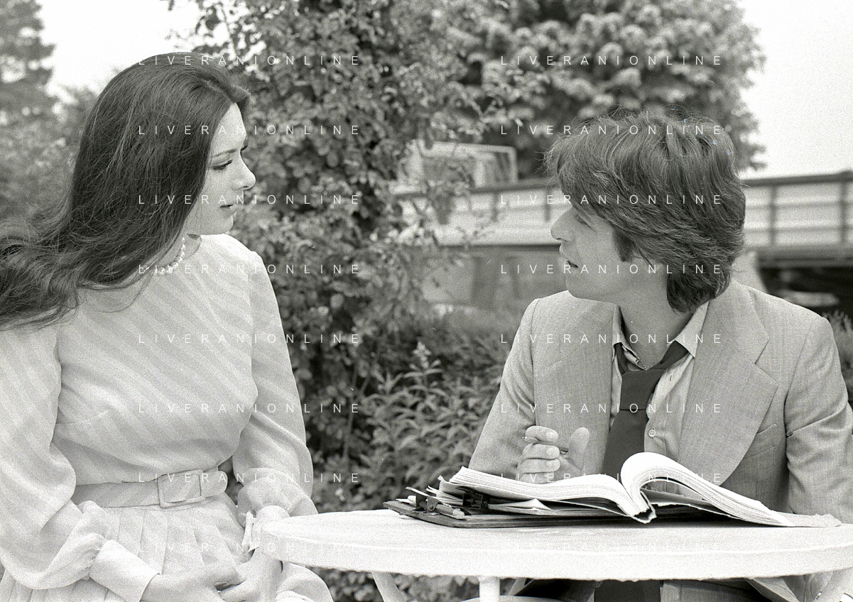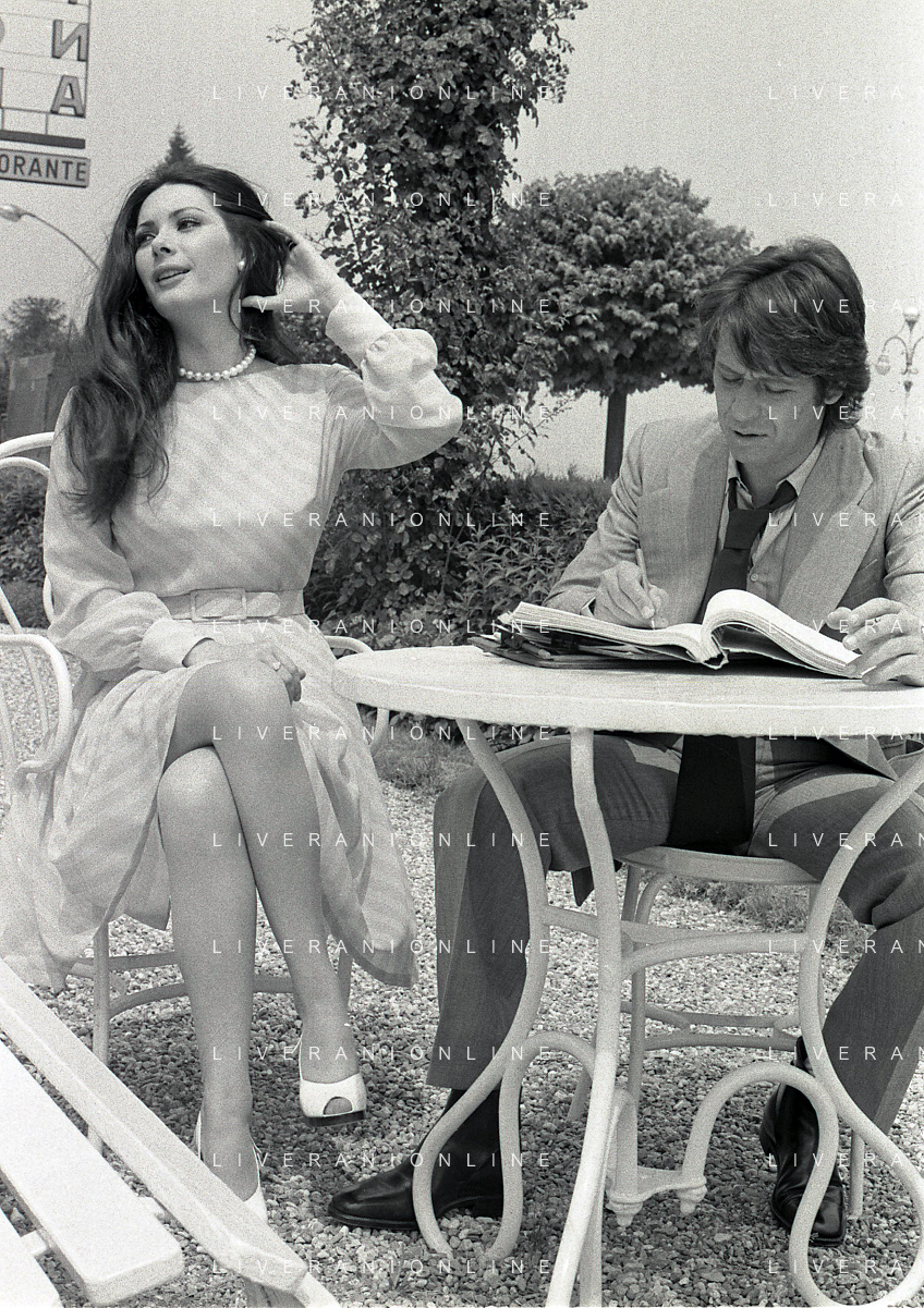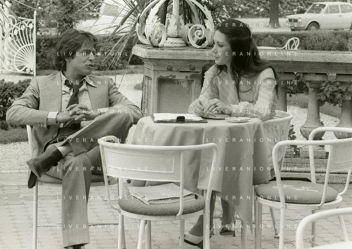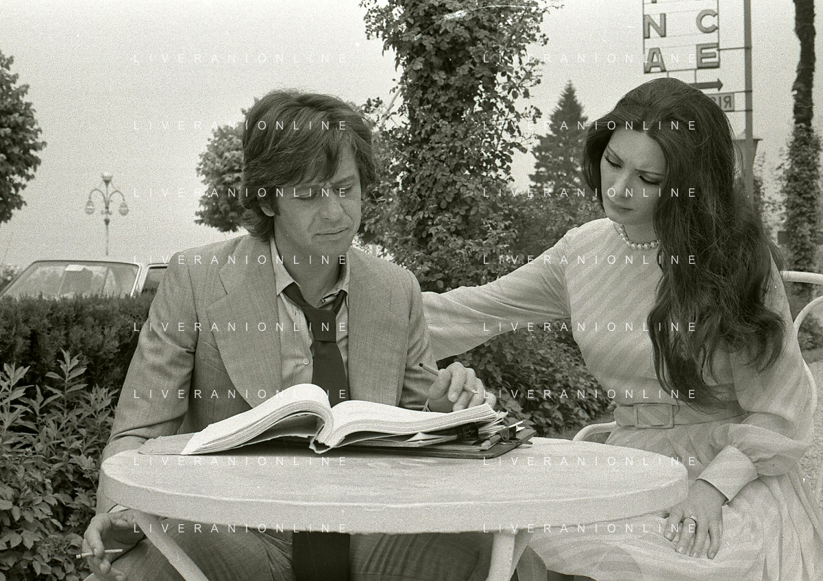 NEG-STRESA SET DEL FILM ANNA, QUEL PARTICOLARE PIACERE NELLA FOTO EDWIGE FENECH CON CORRADO PANI NELL'ANNO 1973 AG ALDO LIVERANI SAS