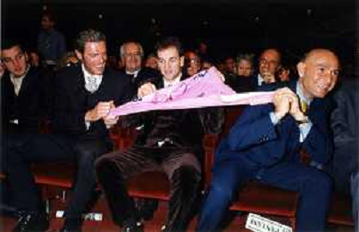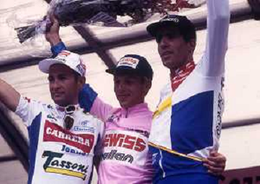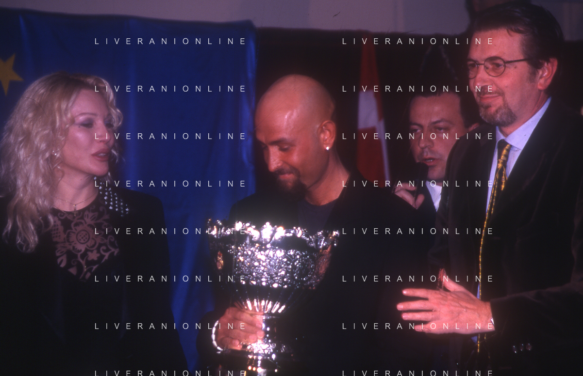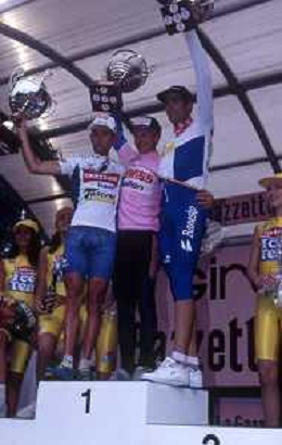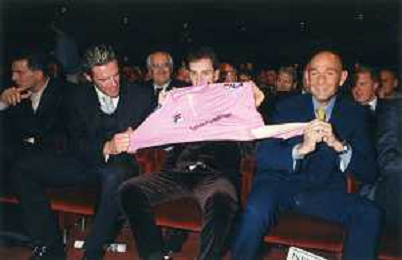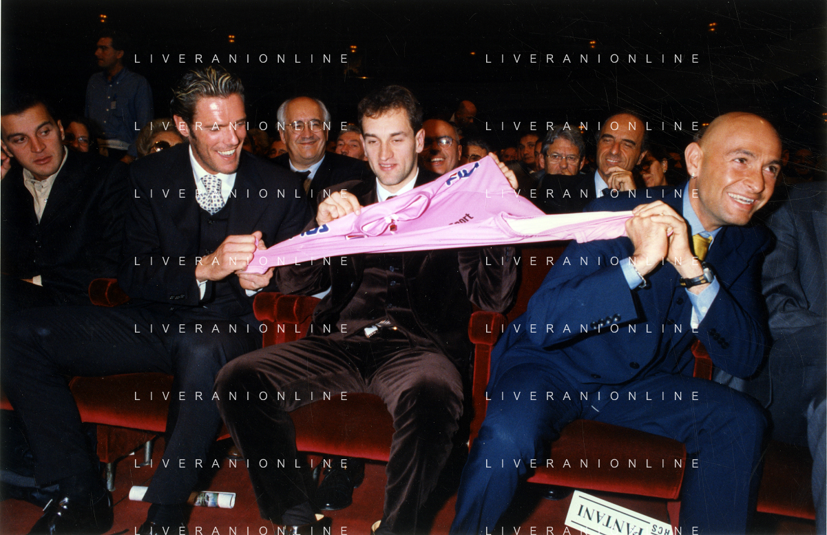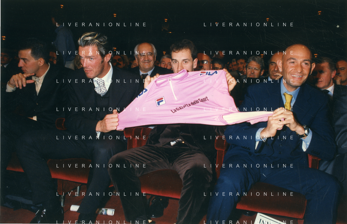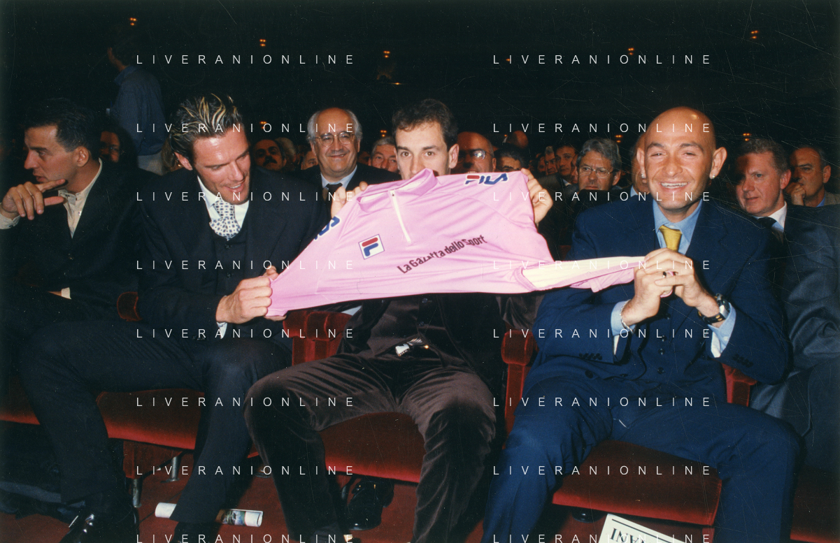DIAP-RETROSPETTIVA MARCO PANTANI CICLISMO NELLA FOTO MARCO PANTANI NELL'ANNO 1998 ALLA PRESENATZIONE DEL GIRO D'ITALIA CON IVAN GOTTI E MARIO CIPOLLINI AG ALDO LIVERANI SAS