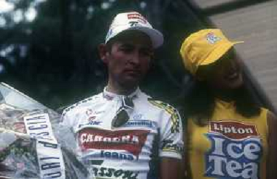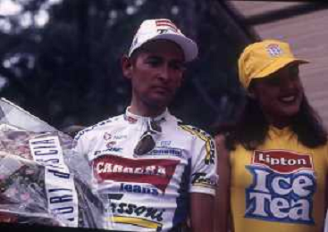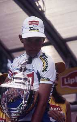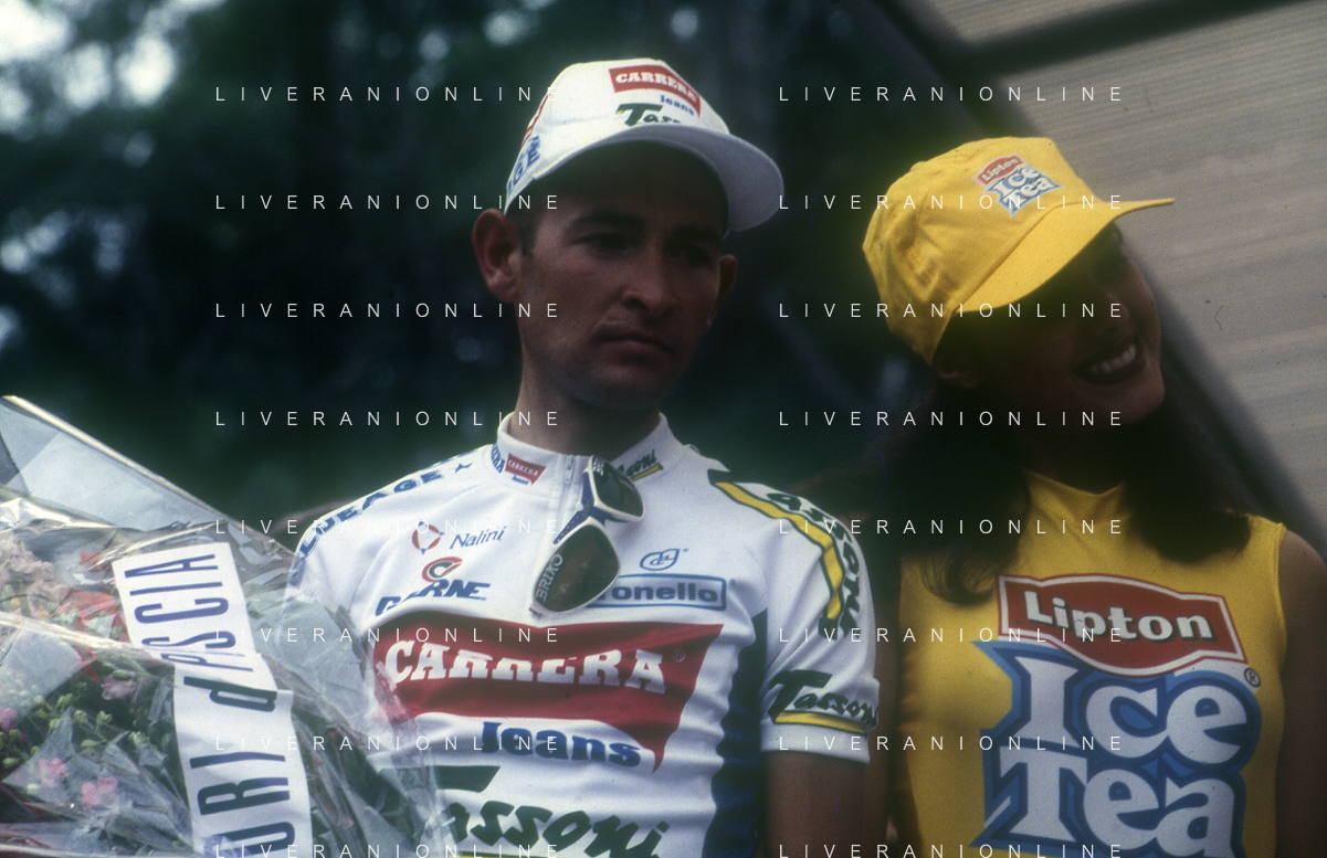 DIAP-RETROSPETTIVA MARCO PANTANI CICLISMO NELLA FOTO MARCO PANTANI NELL'ANNO 1998 CON IVANA SPAGNA AG ALDO LIVERANI SAS