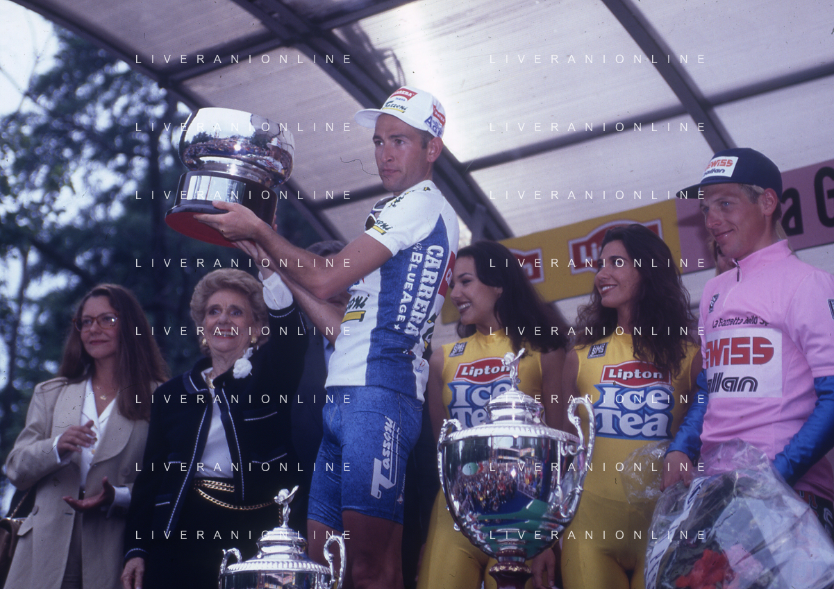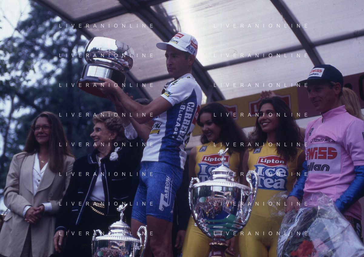 DIAP-RETROSPETTIVA MARCO PANTANI CICLISMO NELLA FOTO MARCO PANTANI CON LE CONTESSE ALBERTA E RESY BONACOSSA AL GIRO D'ITALIA 1994 AG ALDO LIVERANI SAS