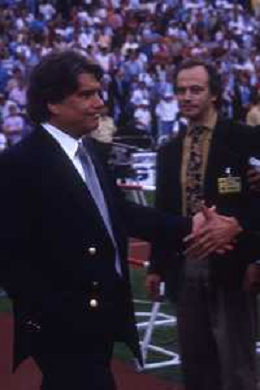 RETROSPETTIVA BERNARD TAPIE PRESIDENTE DEL MARSIGLIA CALCIO NELLA FOTO BERNARD TAPIE PRESIDENTE MARSIGLIA CALCIO CON FRANZ BECKENBAUER AG ALDO LIVERANI SAS