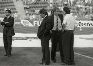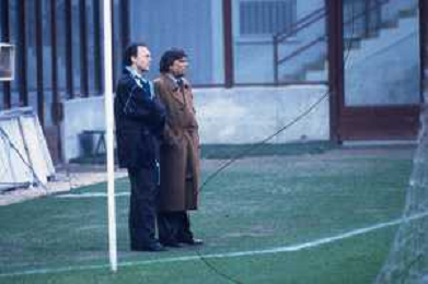 RETROSPETTIVA BERNARD TAPIE PRESIDENTE DEL MARSIGLIA CALCIO NELLA FOTO BERNARD TAPIE CON Raymond Goethals AG ALDO LIVERANI SAS