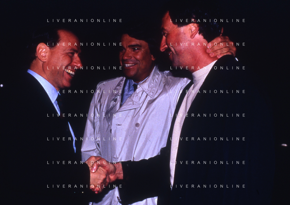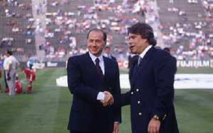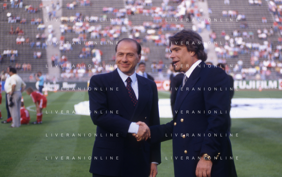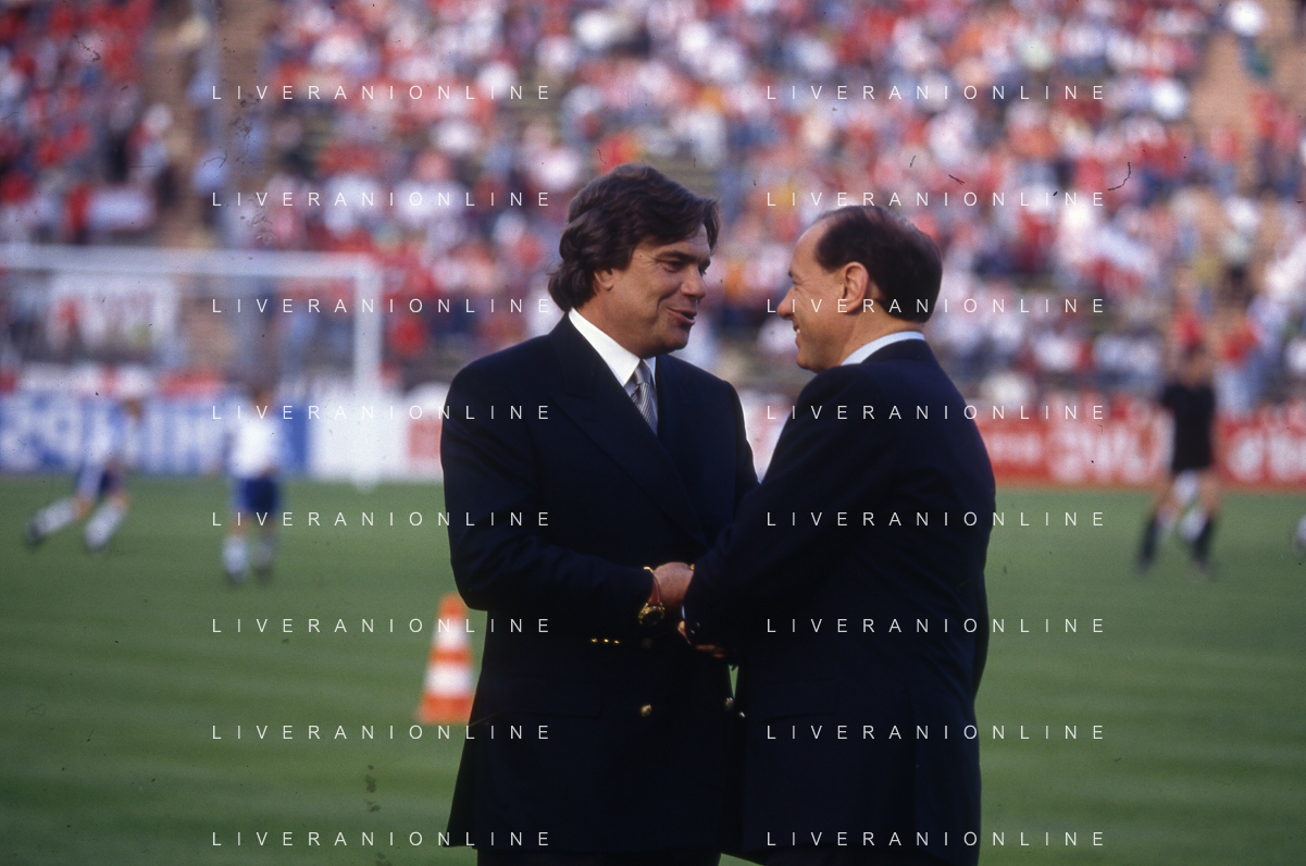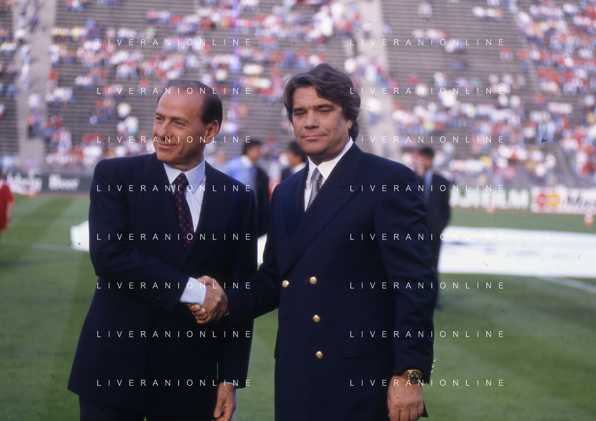 RETROSPETTIVA BERNARD TAPIE PRESIDENTE DEL MARSIGLIA CALCIO NELLA FOTO BERNARD TAPIE CON SILVIO BERLUSCONI AG ALDO LIVERANI SAS