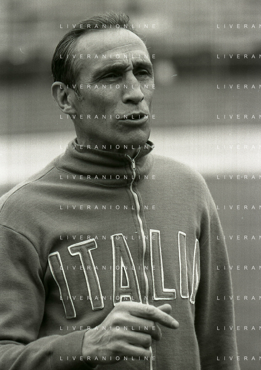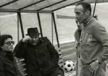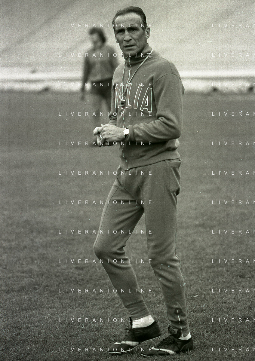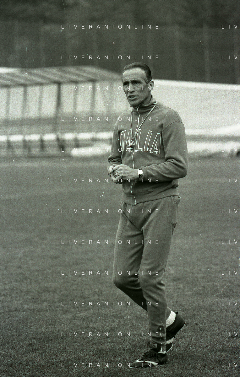 1975 VARESE-ALLENAMENTO NAZIONALE ITALIANA DI CALCIO PRIMA DELL'INCONTRO CON LA NAZIONALE OLANDESE NELLA FOTO ENZO BEARZOT CON GIANCARLO ANTOGNONI AG ALDO LIVERANI SAS