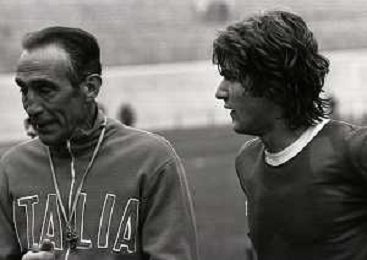 1975 VARESE-ALLENAMENTO NAZIONALE ITALIANA DI CALCIO PRIMA DELL'INCONTRO CON LA NAZIONALE OLANDESE NELLA FOTO FULVIO BERNARDINI E ENZO BEARZOT AG ALDO LIVERANI SAS