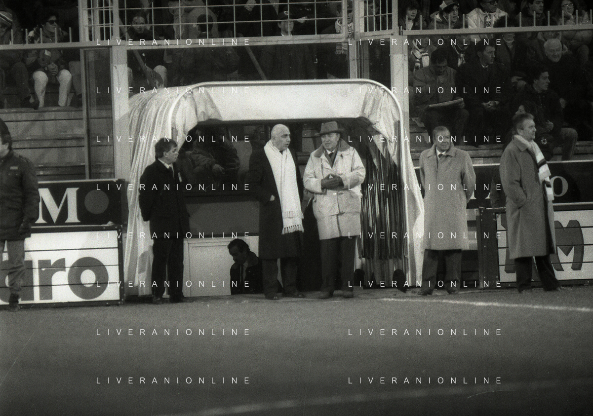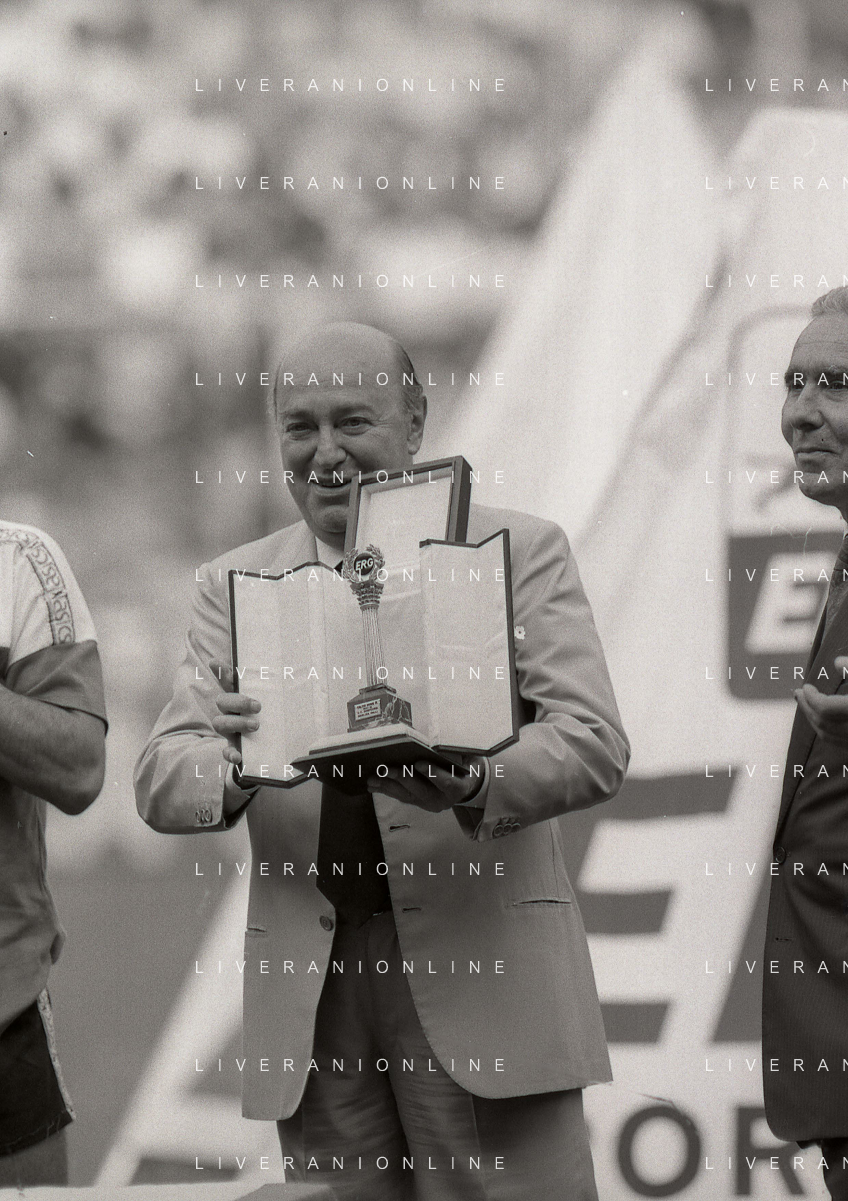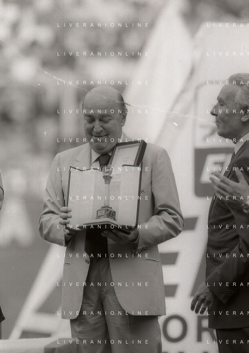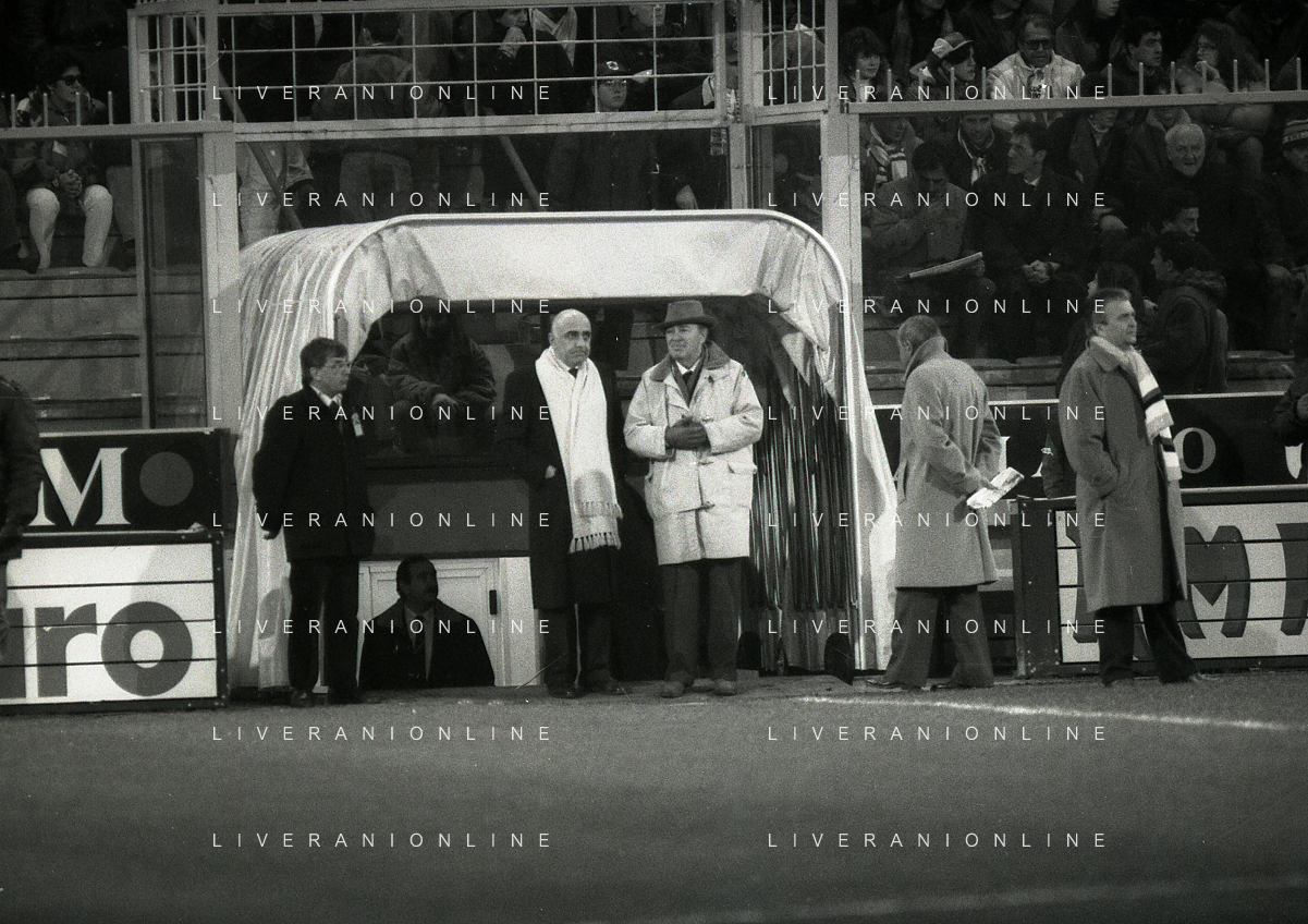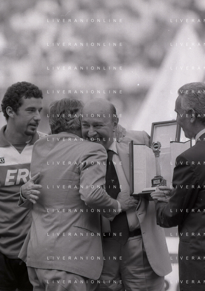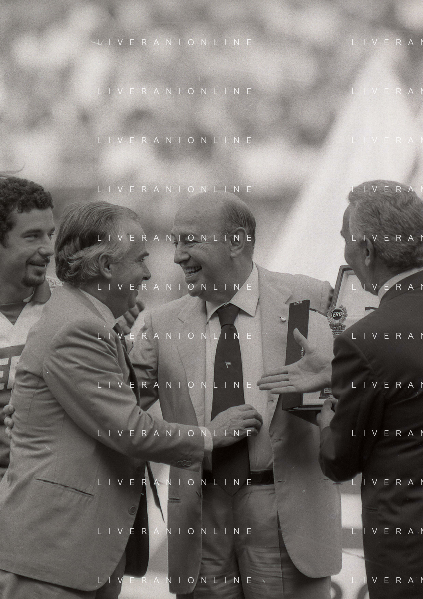 1990-1991 RETROSPETTIVA PAOLO MANTOVANI PRESIDENTE SAMPDORIA CALCIO NELLA FOTO PAOLO MANTOVANI PRESIDENTE SAMPDORIA CALCIO CON RICCARDO GARRONE AG ALDO LIVERANI SAS