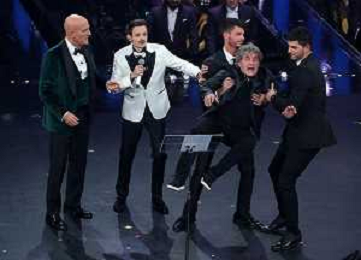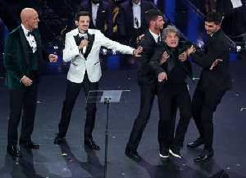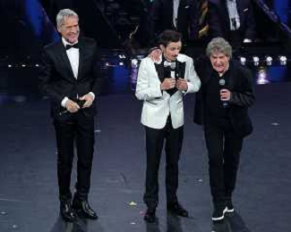 69mo Festival della Canzone Italiana Sanremo 2019 - Terza Serata Sanremo (Imperia) - 07.02.2019 Nella Foto: Fabio Rovazzi claudio bisio fausto leali /Ph.Vitez-Ag. Aldo Liverani