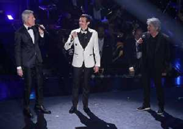 69mo Festival della Canzone Italiana Sanremo 2019 - Terza Serata Sanremo (Imperia) - 07.02.2019 Nella Foto: Fabio Rovazzi Claudio Baglioni fausto leali /Ph.Vitez-Ag. Aldo Liverani