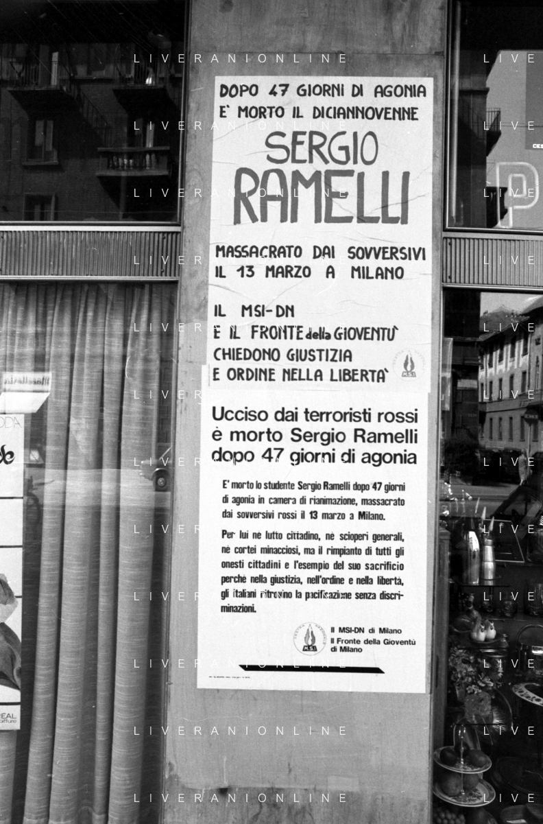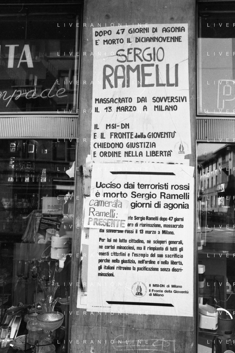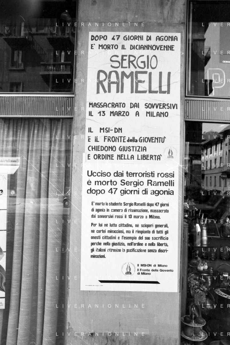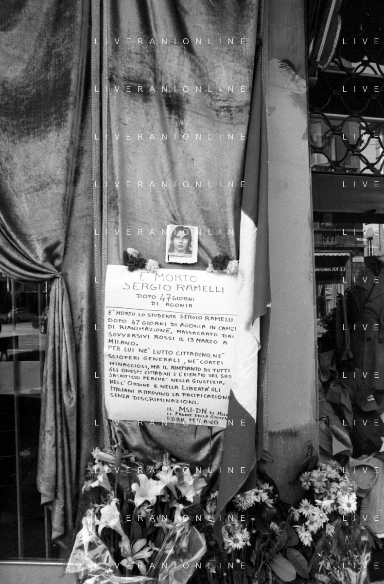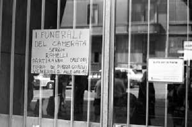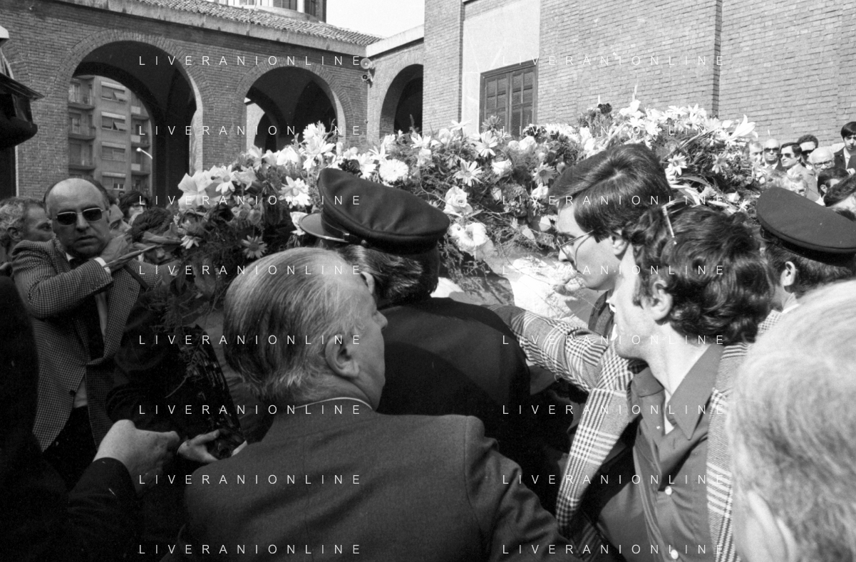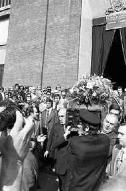 MILANO 03/05/1975 - FUNERALI di SERGIO RAMELLI, aggredito il 13 Aprile da militanti dell'ultra sinistra che lo colpirono alla testa con chiavii inglesi e sbarre di ferro.