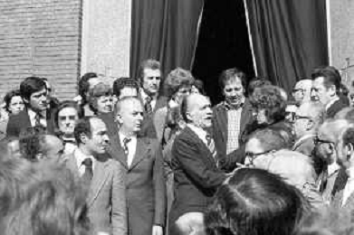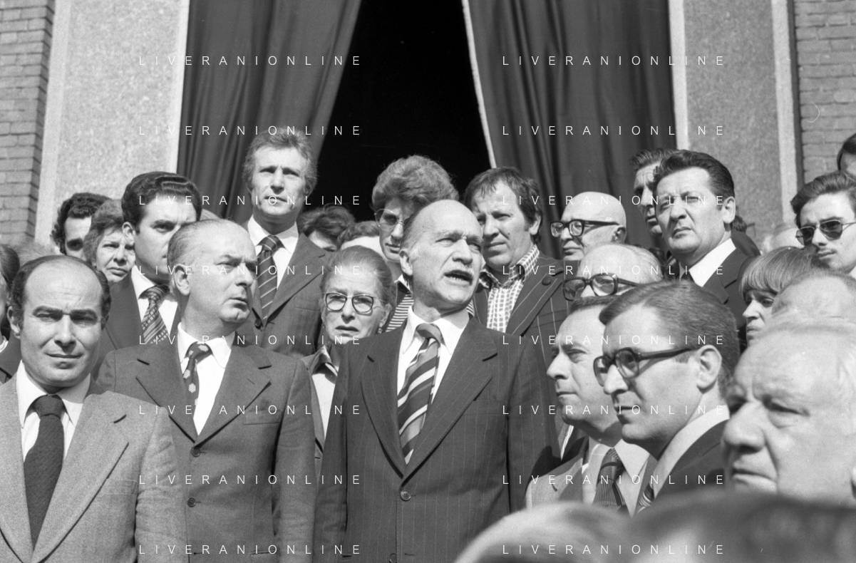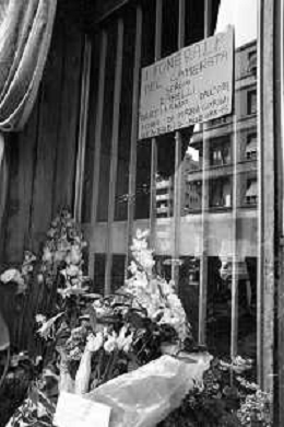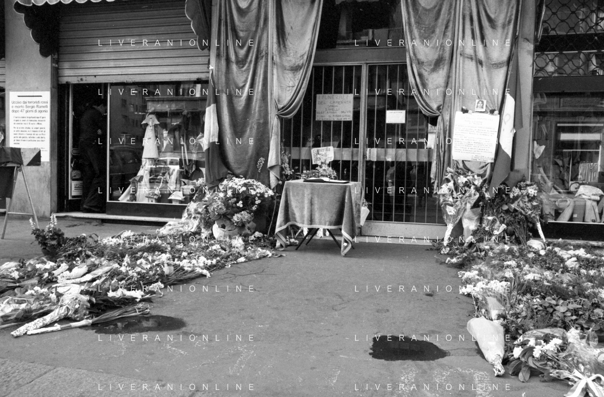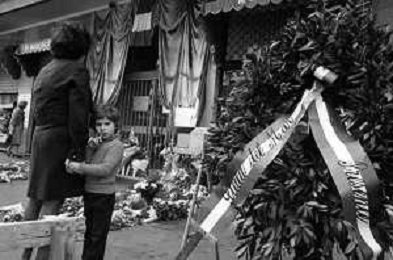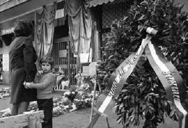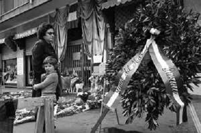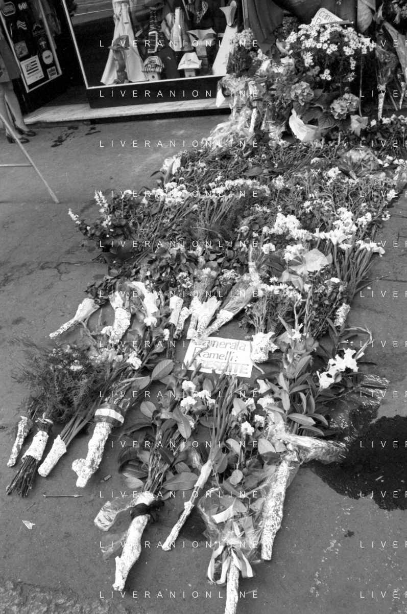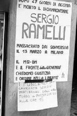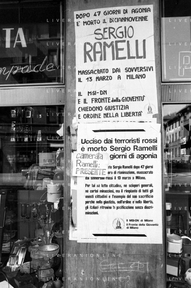MILANO 03/05/1975 - FUNERALI di SERGIO RAMELLI, aggredito il 13 Aprile da militanti dell'ultra sinistra che lo colpirono alla testa con chiavii inglesi e sbarre di ferro.