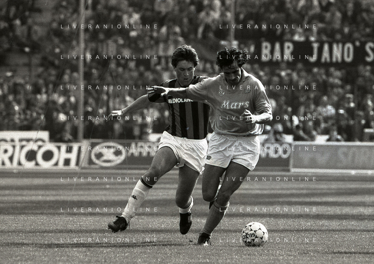 09-04-1989 MILANO-CAMPIONATO DI CALCIO SERIE A MILAN NAPOLI 0-0 NELLA FOTO ANDREA CARNEVALE E FRANCO BARESI AG ALDO LIVERANI SAS