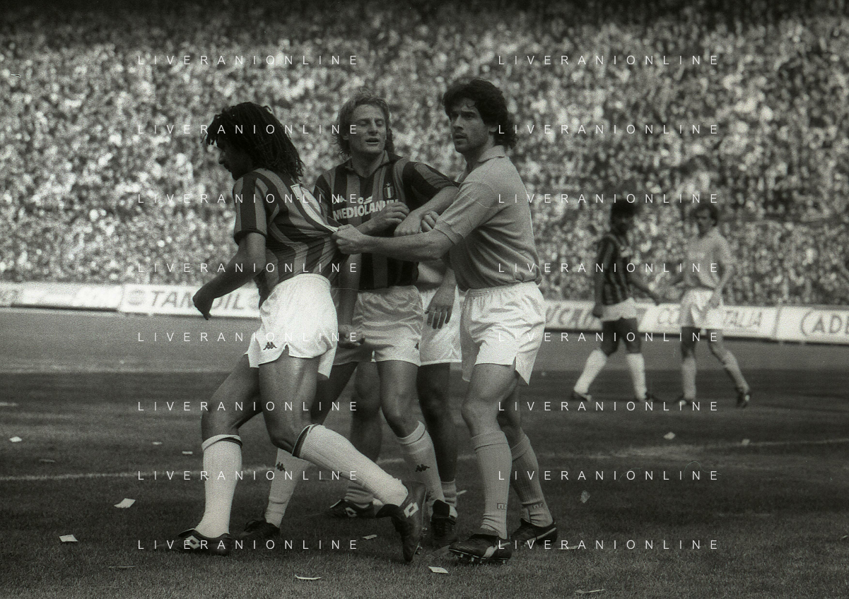 09-04-1989 MILANO-CAMPIONATO DI CALCIO SERIE A MILAN NAPOLI 0-0 NELLA FOTO RUUD GULLIT-ANGELO COLOMBO E GIANCARLO CORRADINI AG ALDO LIVERANI SAS