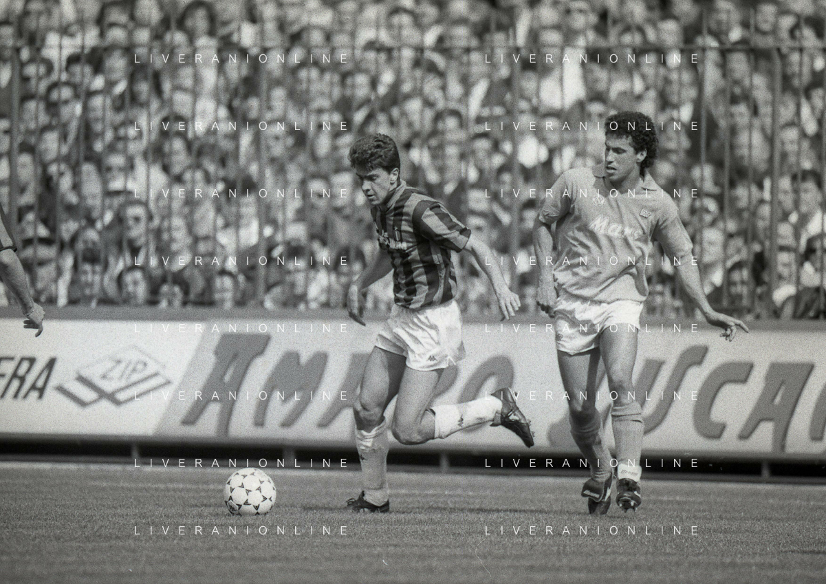 09-04-1989 MILANO-CAMPIONATO DI CALCIO SERIE A MILAN NAPOLI 0-0 NELLA FOTO ALESSANDRO COSTACURTA E ANTONIO CARECA AG ALDO LIVERANI SAS
