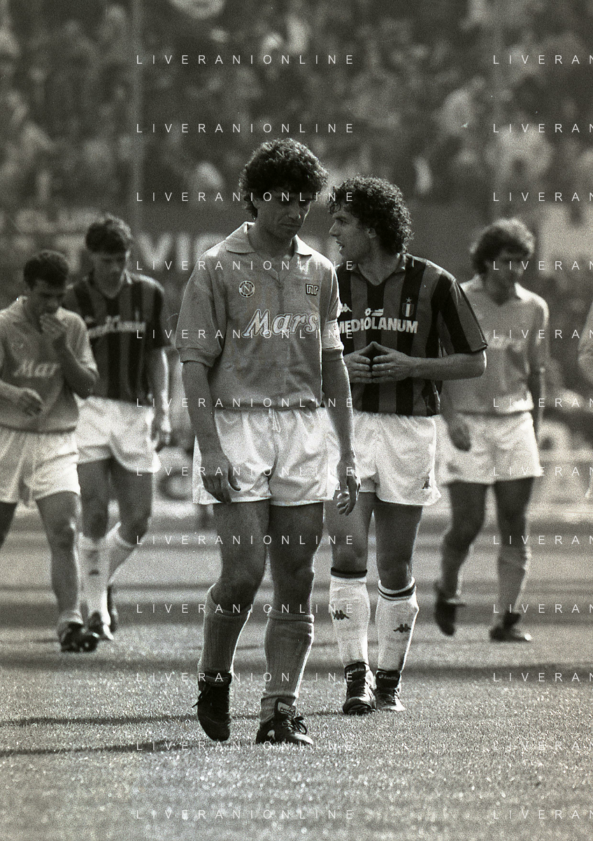 09-04-1989 MILANO-CAMPIONATO DI CALCIO SERIE A MILAN NAPOLI 0-0 NELLA FOTO ALEMAO E FRANCO BARESI AG ALDO LIVERANI SAS