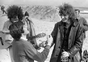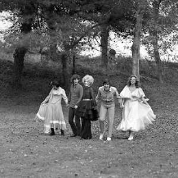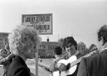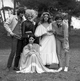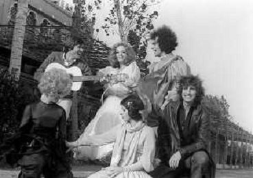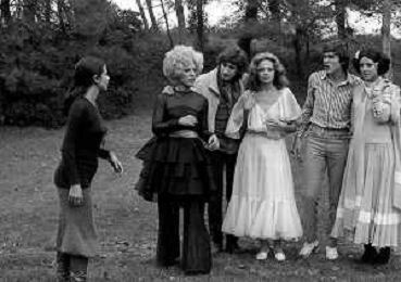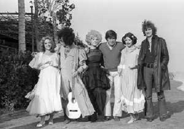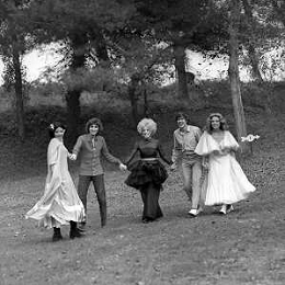 GIANNI MORANDI, cantante e attore italiano - RETROSPETTIVA nella foto sul set durante le riprese del film Tv 'Scappo per Cantare' nel 1970 con il gruppo musicale Le Voci Blu e Laura Efrikian ©ARCHIVIO / AGENZIA ALDO LIVERANI SAS