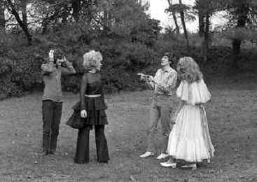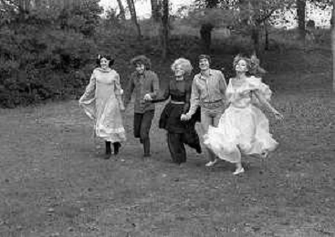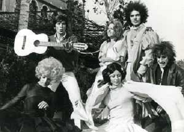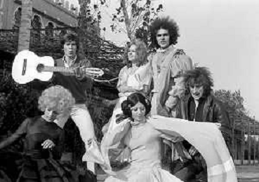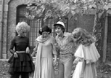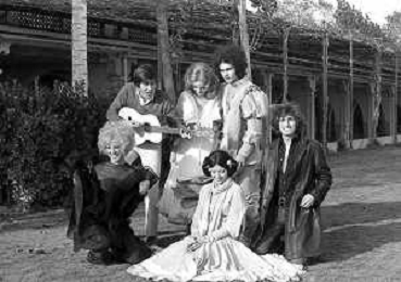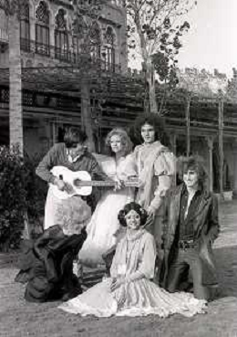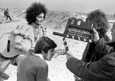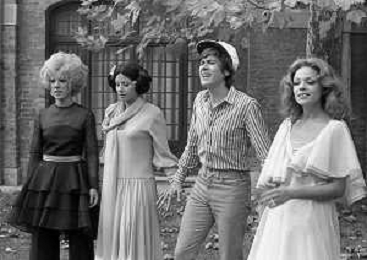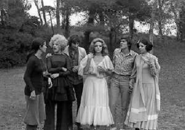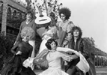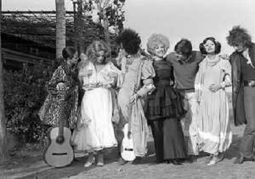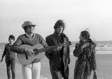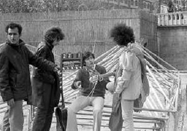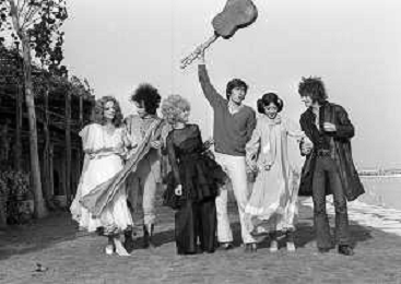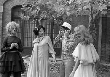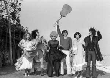 GIANNI MORANDI, cantante e attore italiano - RETROSPETTIVA nella foto sul set durante le riprese del film Tv 'Scappo per Cantare' nel 1970 con Mauro Lusini e il gruppo musicale Le Voci Blu e Laura Efrikian ©ARCHIVIO / AGENZIA ALDO LIVERANI SAS